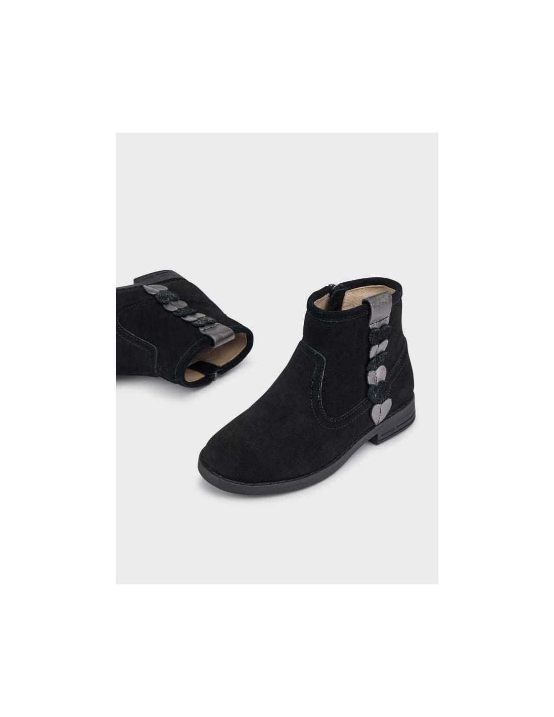 Zapato ECOFRIENDS, fabricado con piel curtida de manera sostenible. Botas de caña media para niña, muy prácticas para proteger sus pies en los momentos de frío. Material exterior de piel. Plantilla de piel. Todos nuestros zapatos se realizan con pieles libres de cromo. Suela ligera y antideslizante. Cierre con cremallera lateral para una puesta rápida y sencilla. Este modelo también está disponible en las tallas 26 a 30 y en las tallas 36 a 38.