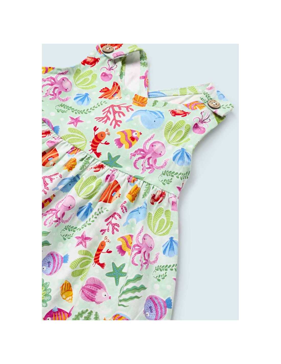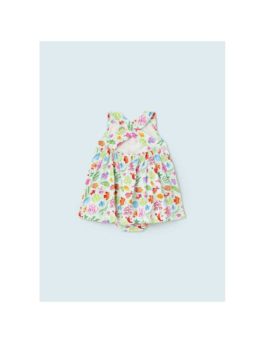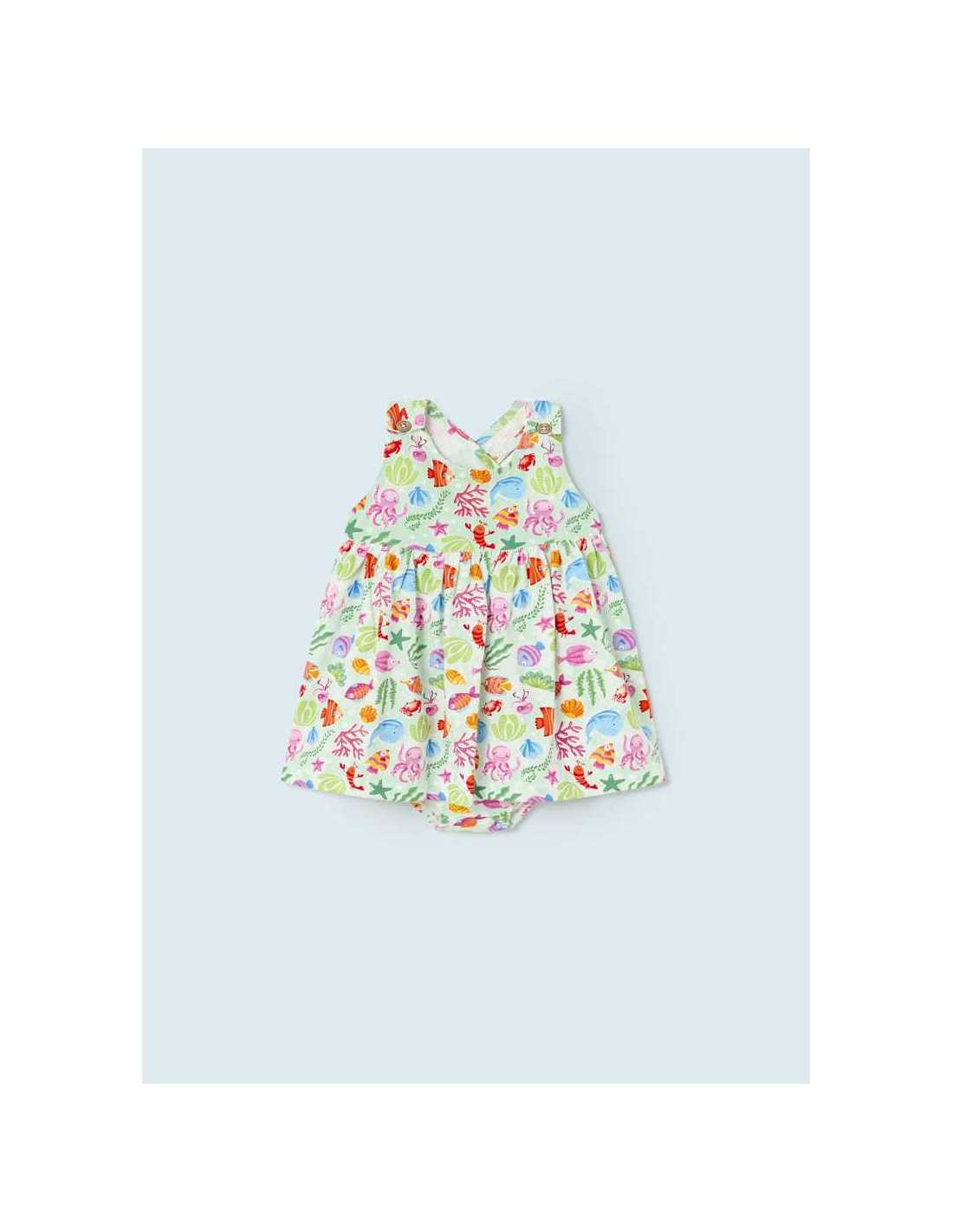 Prenda ECOFRIENDS 100% algodón sostenible. Conjunto de dos piezas para bebé formado por un vestido con braguitas a juego.