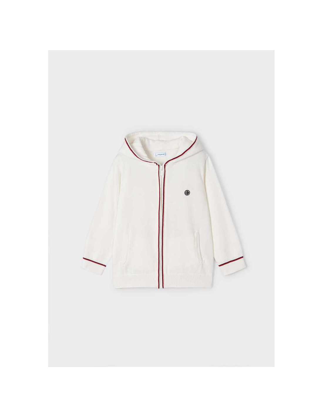 Prenda ECOFRIEND 100% algodón sostenible. Sudadera manga larga para niño. Cuello con capucha. Cierre central delantero con cremallera. Bolsillos en los laterales.