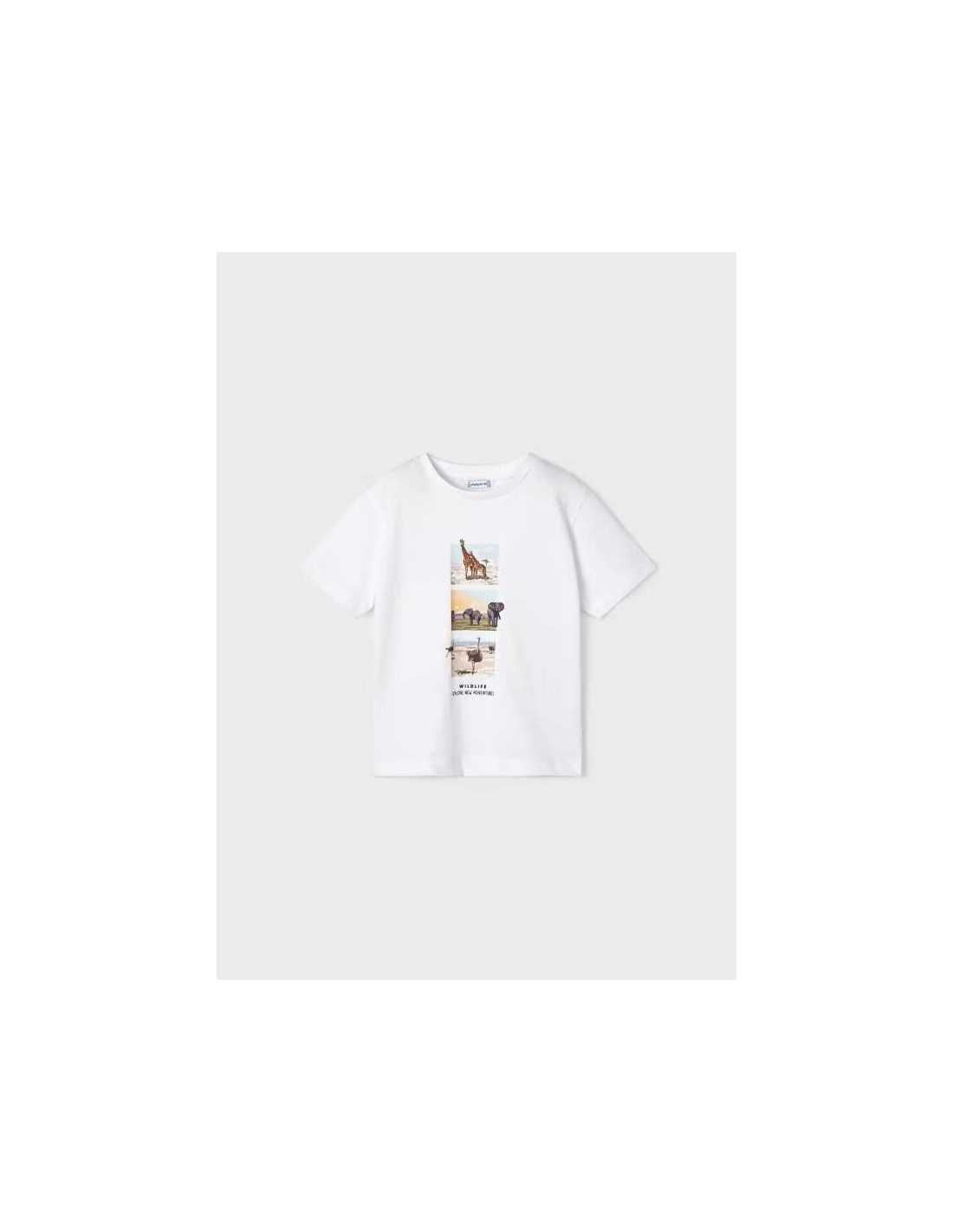 Prenda ECOFRIEND 100% algodón sostenible. Camiseta de manga corta para niño. Cuello redondo. Diseño estampado.