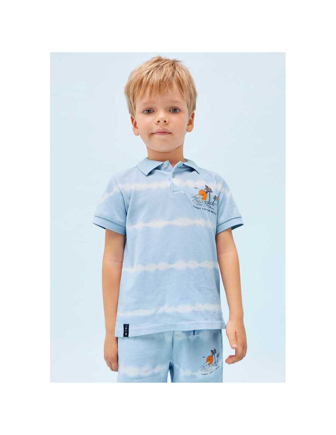 Polo de manga corta para niño. Cuello de polo clásico. Tejido 100% algodón. Estampado tie-dye.