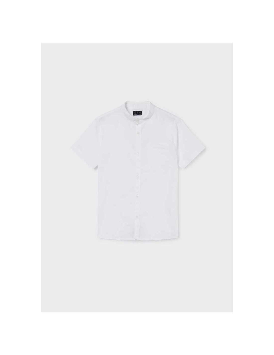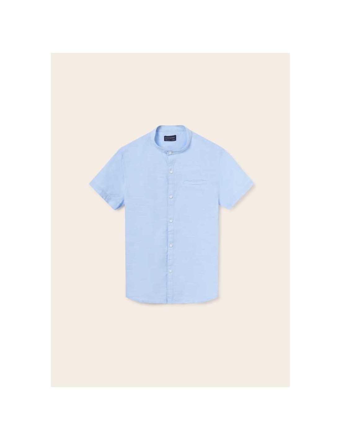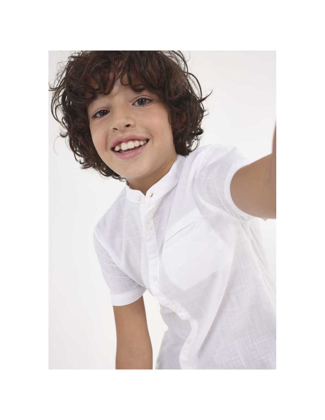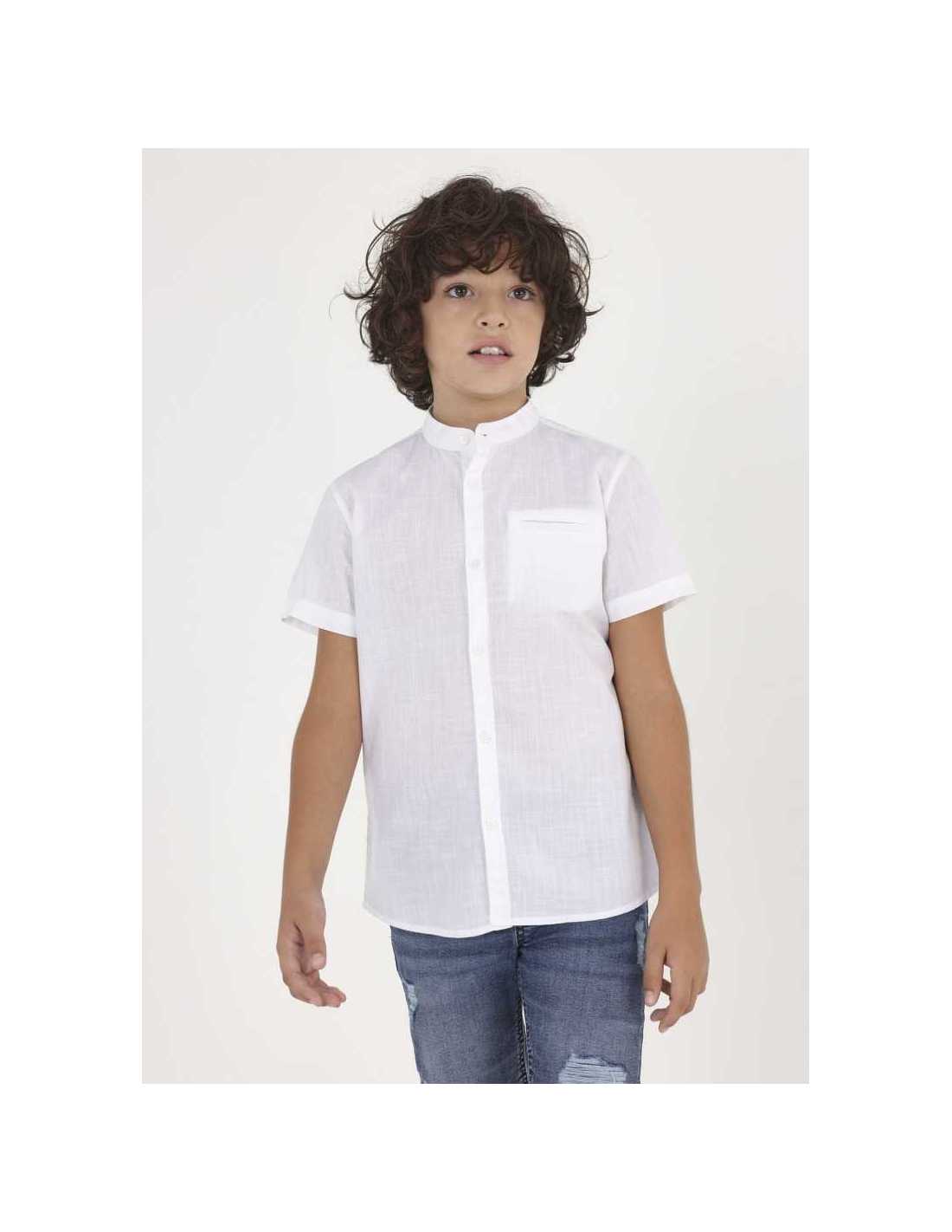Prenda ECOFRIENDS 100% algodón sostenible. Camisa de manga corta para chico. Modelo con cuello mao al tono. Cierre con botones en la parte delantera. Bolsillo funcional en la parte delantera.