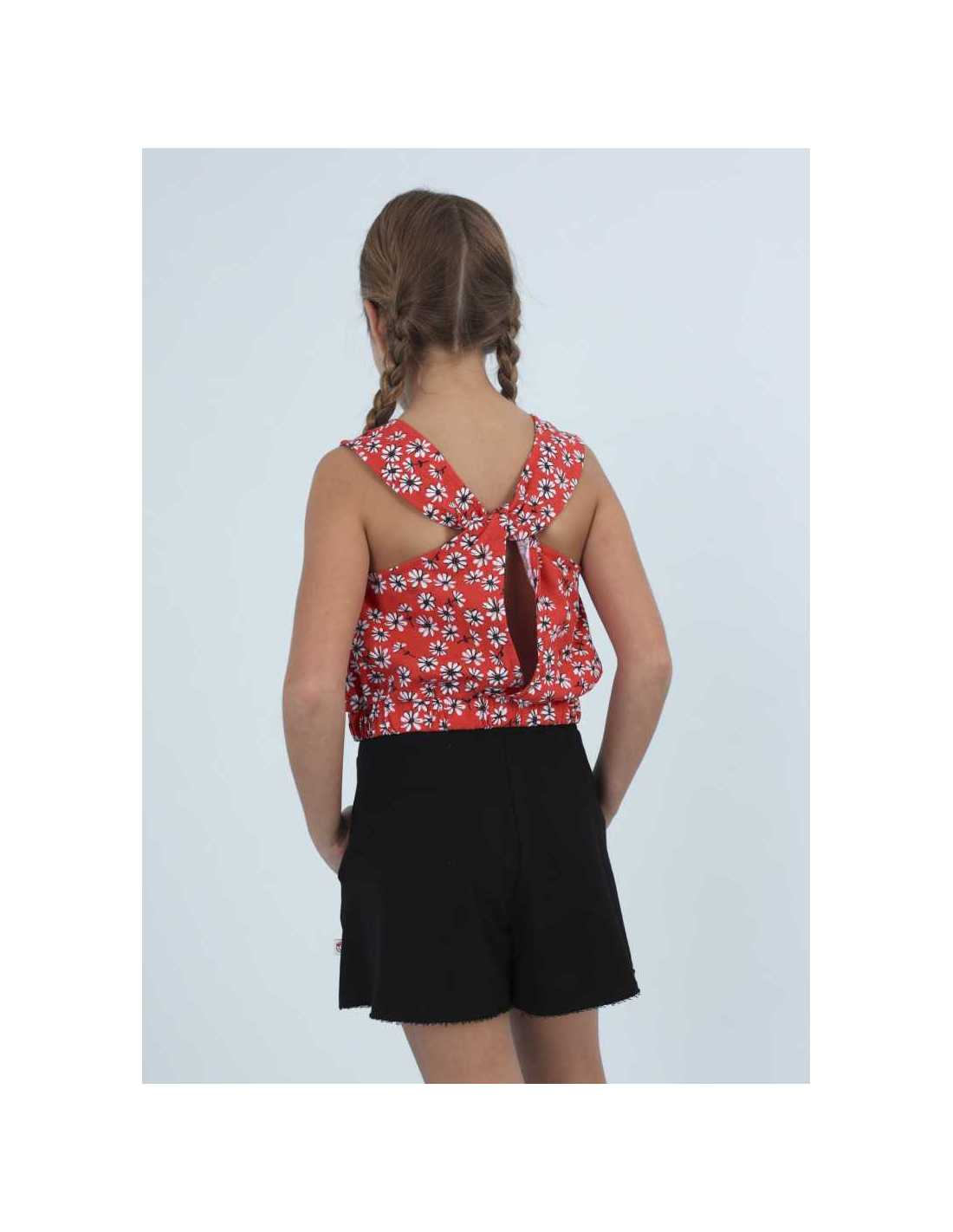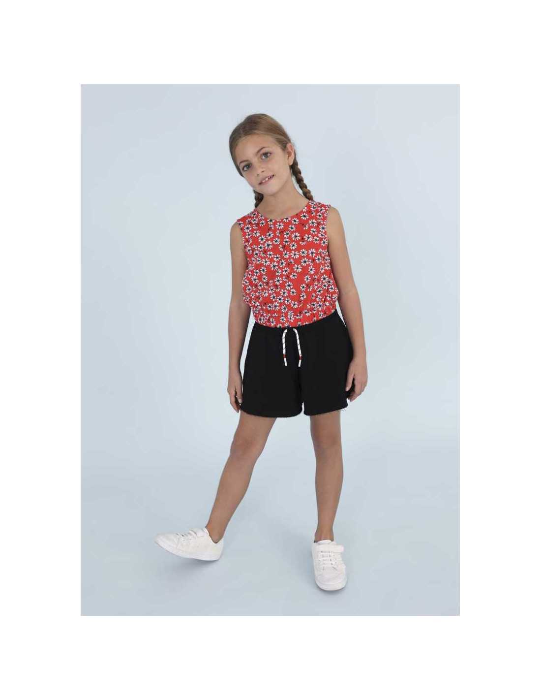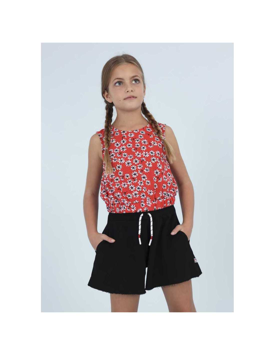 Pantalón de tipo short para chica. Cintura con cordón interior ajustable. Bolsillos en los laterales.