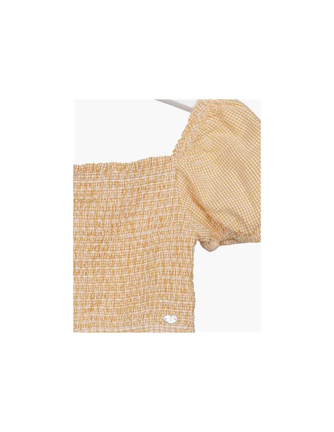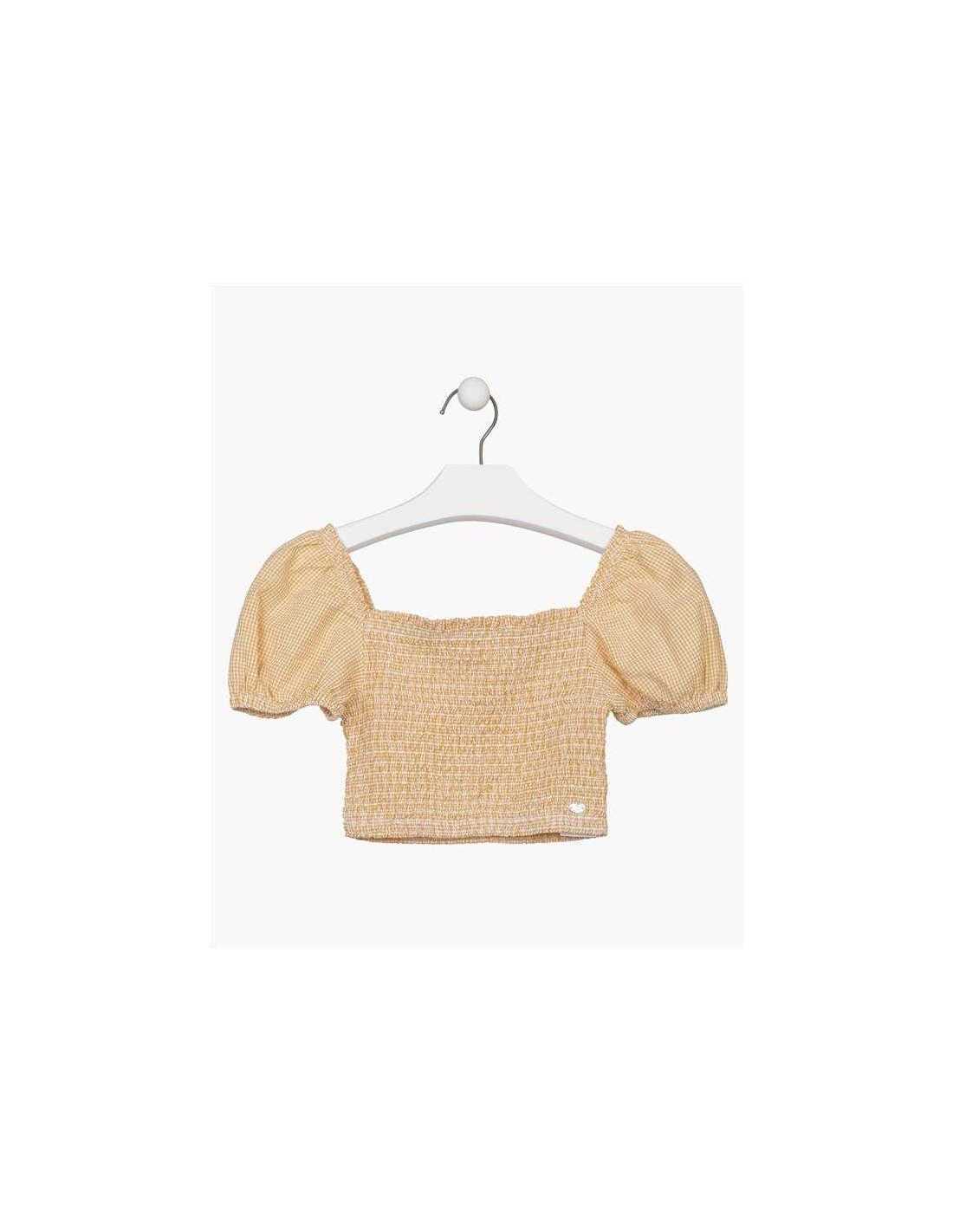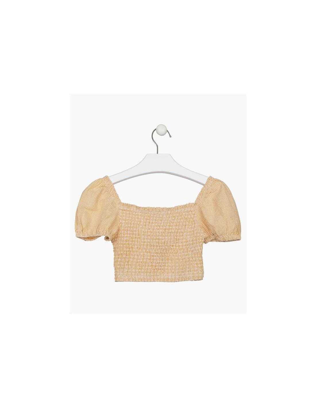 Top gomitas tejido cuadros vichi  manga corta farol.