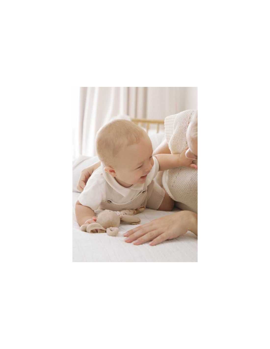 Original pantalón peto para recién nacido. Cierre con botones a presión en tirantes la puesta de la prenda. Tejido de punto tricotosa de tacto suave y agradable.