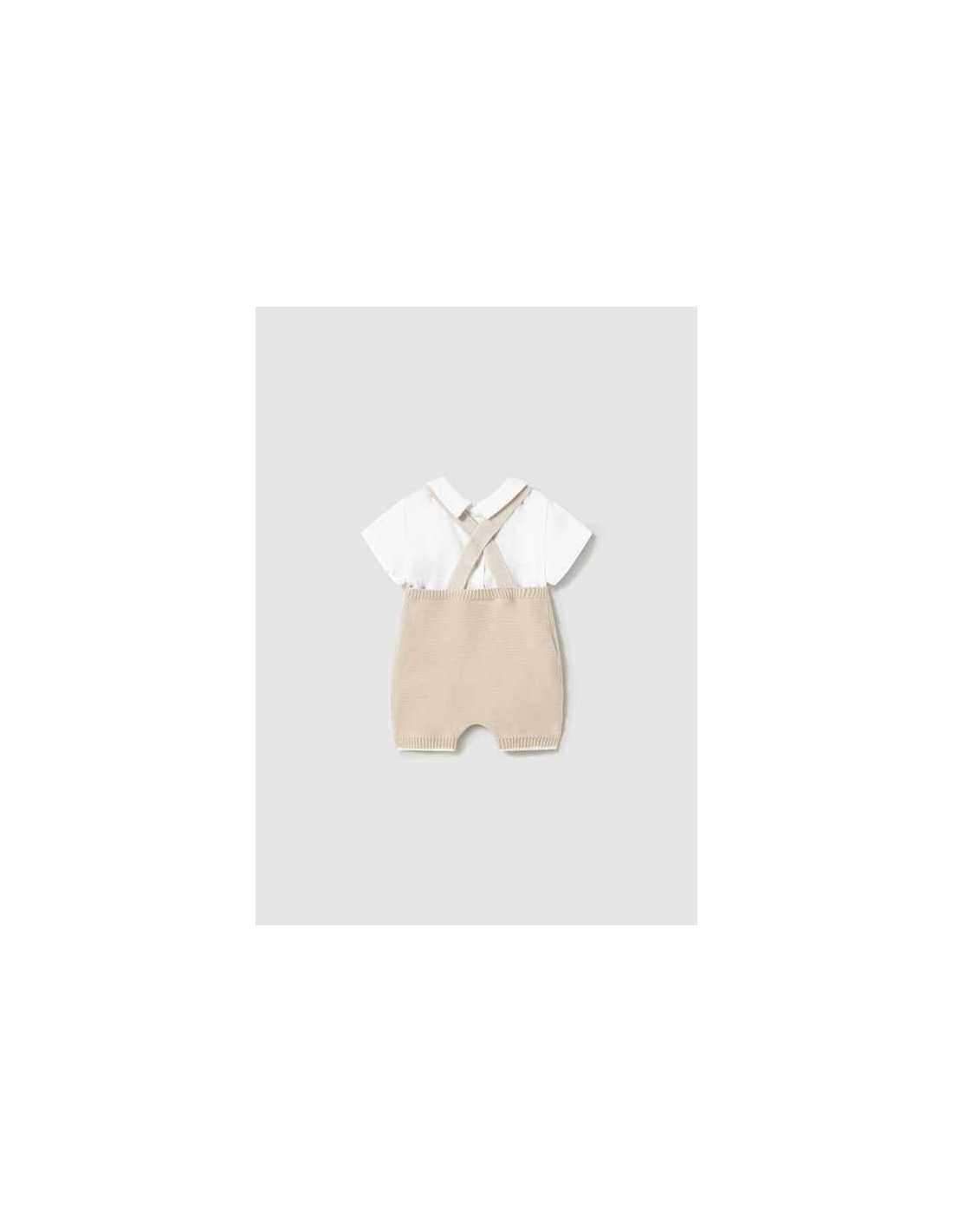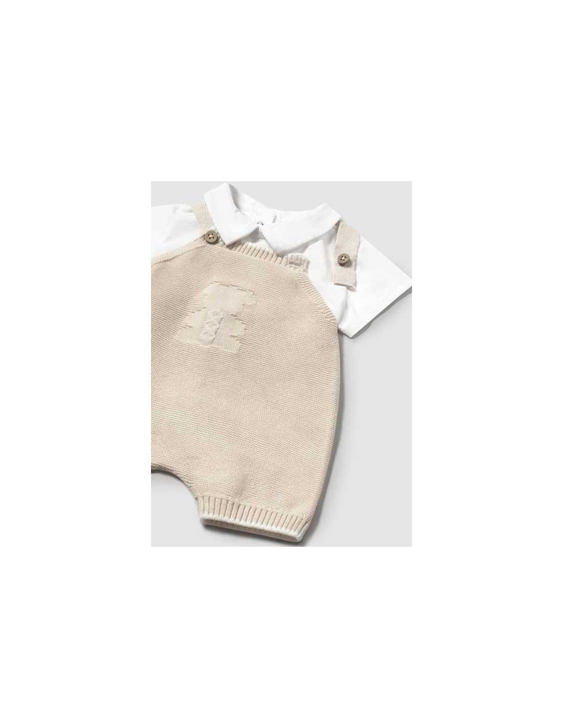 Conjunto peto tricot y camiseta recién nacido