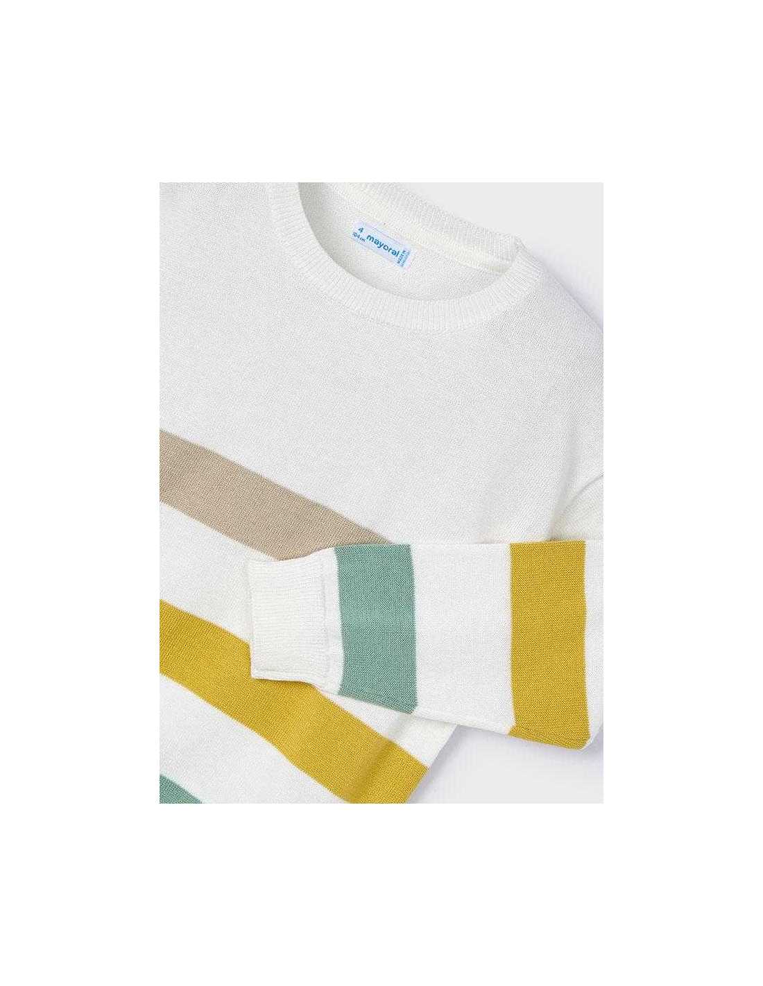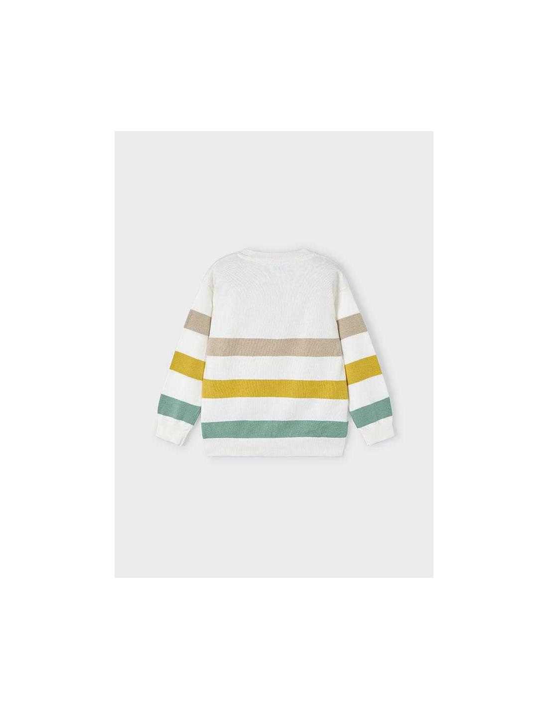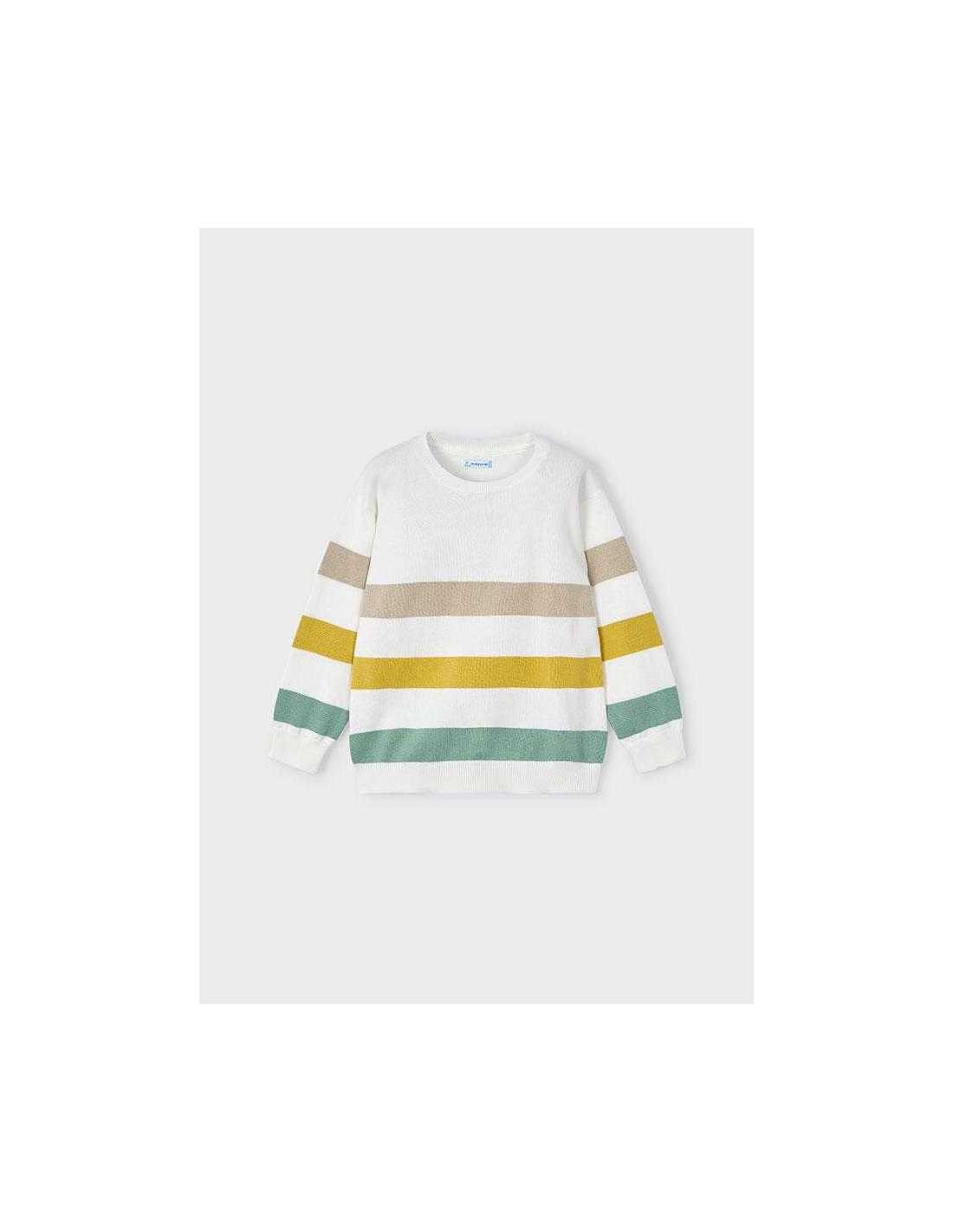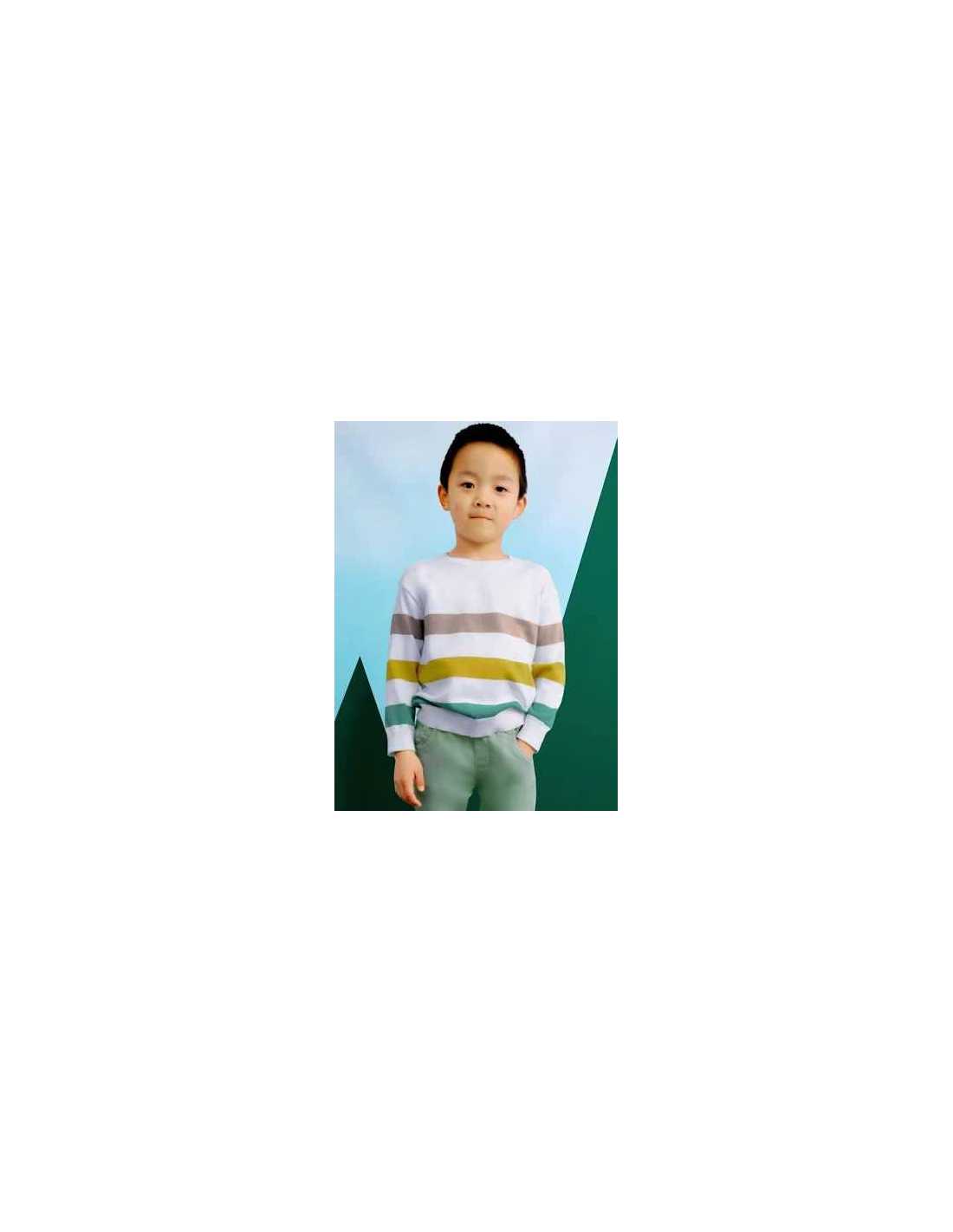 Jersey de manga larga para niño. Cuello redondo. Silueta de líneas relajadas con hombros caídos. Tejido 100% algodón. Bajo, puños y cuello de punto elástico para un mejor ajuste. Motivo de rayas.