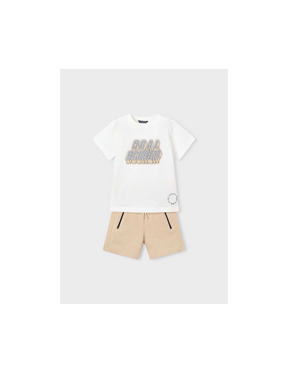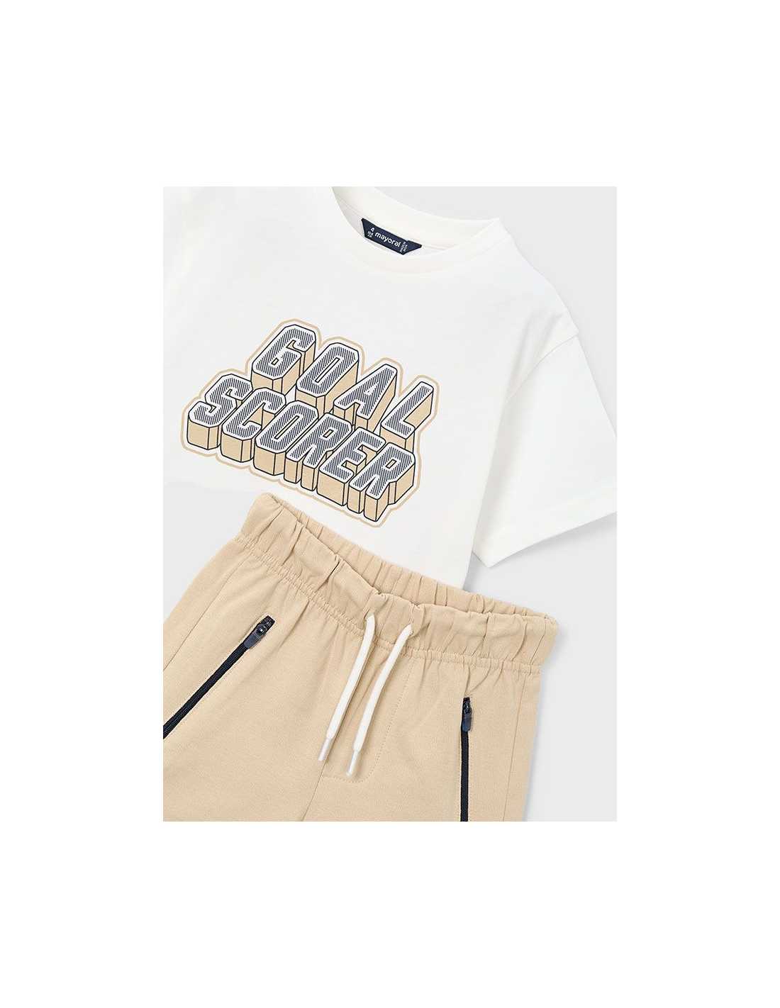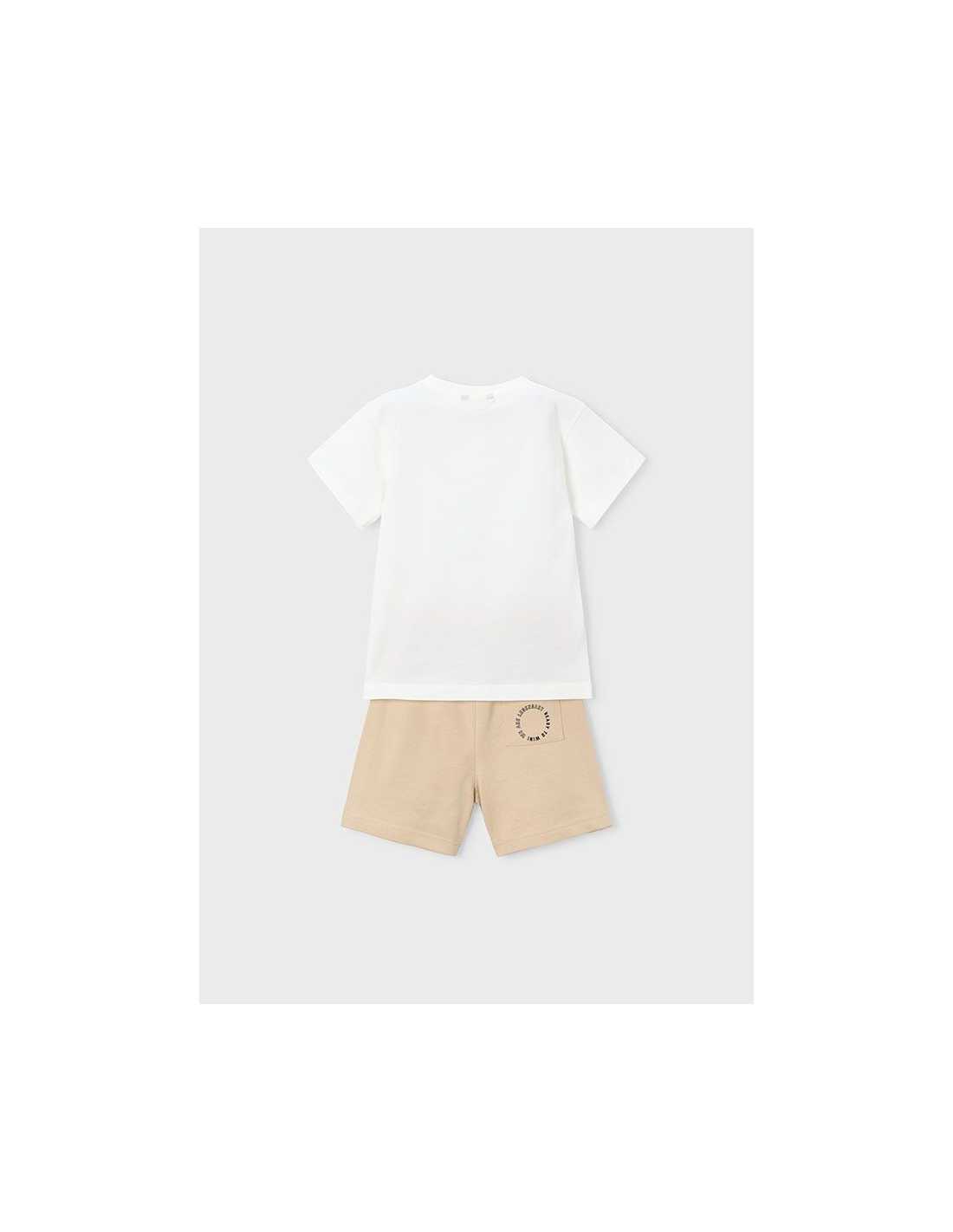 Conjunto con gráfico en la parte frontal frente y pantalones cortos. Disponible desde la talla 4 hasta la talla 10.