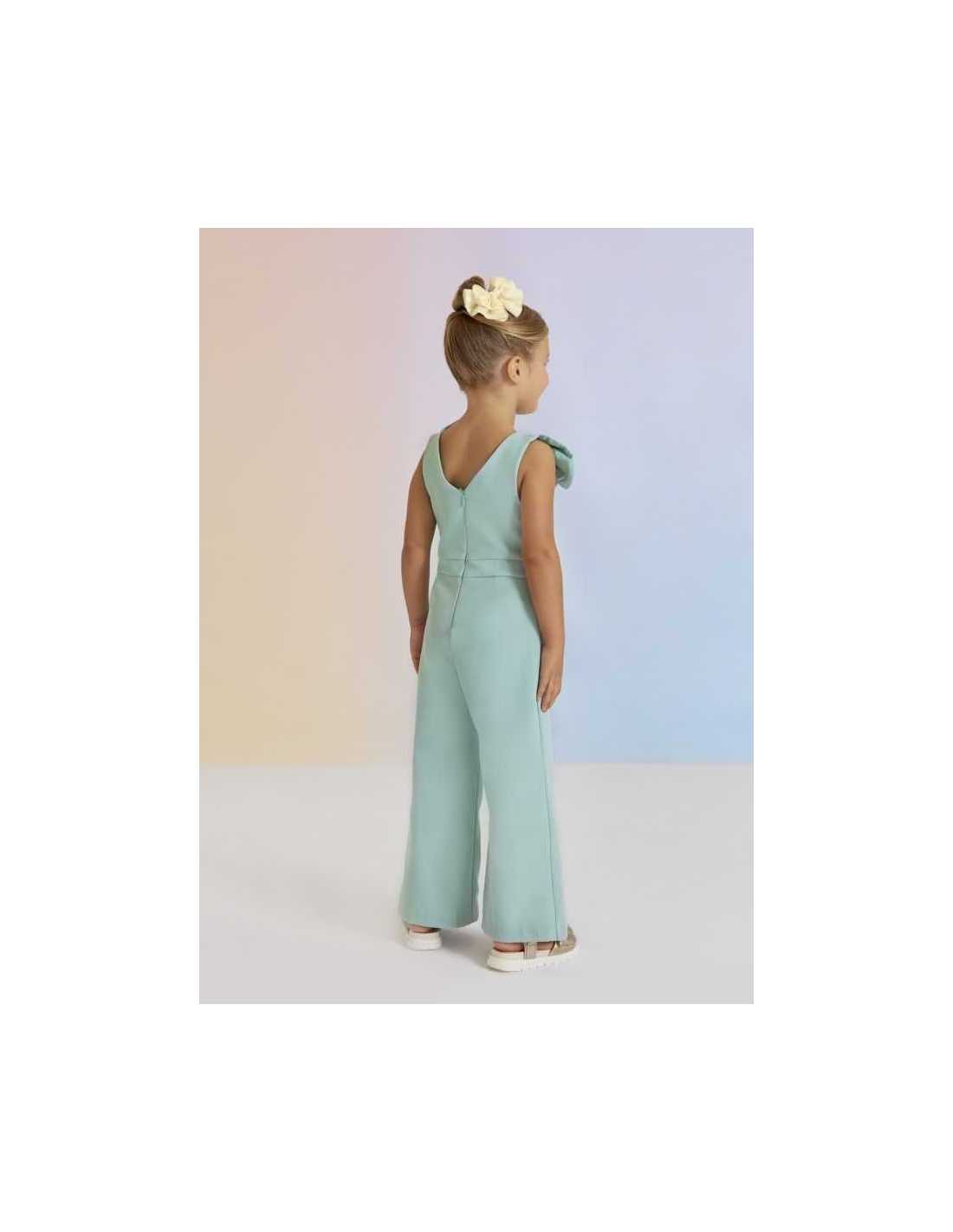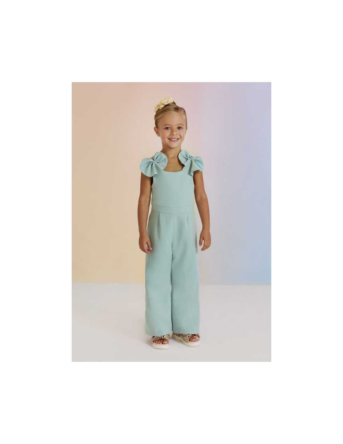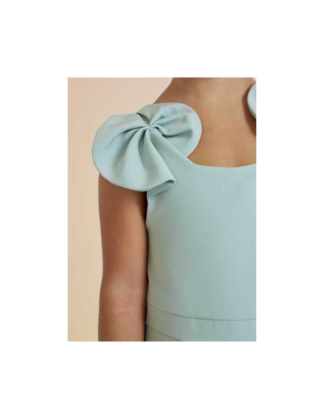 Mono largo de crepé con bonitos lazos fruncidos.