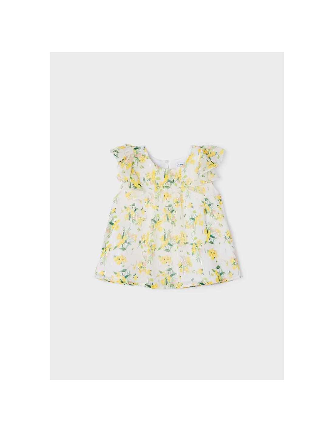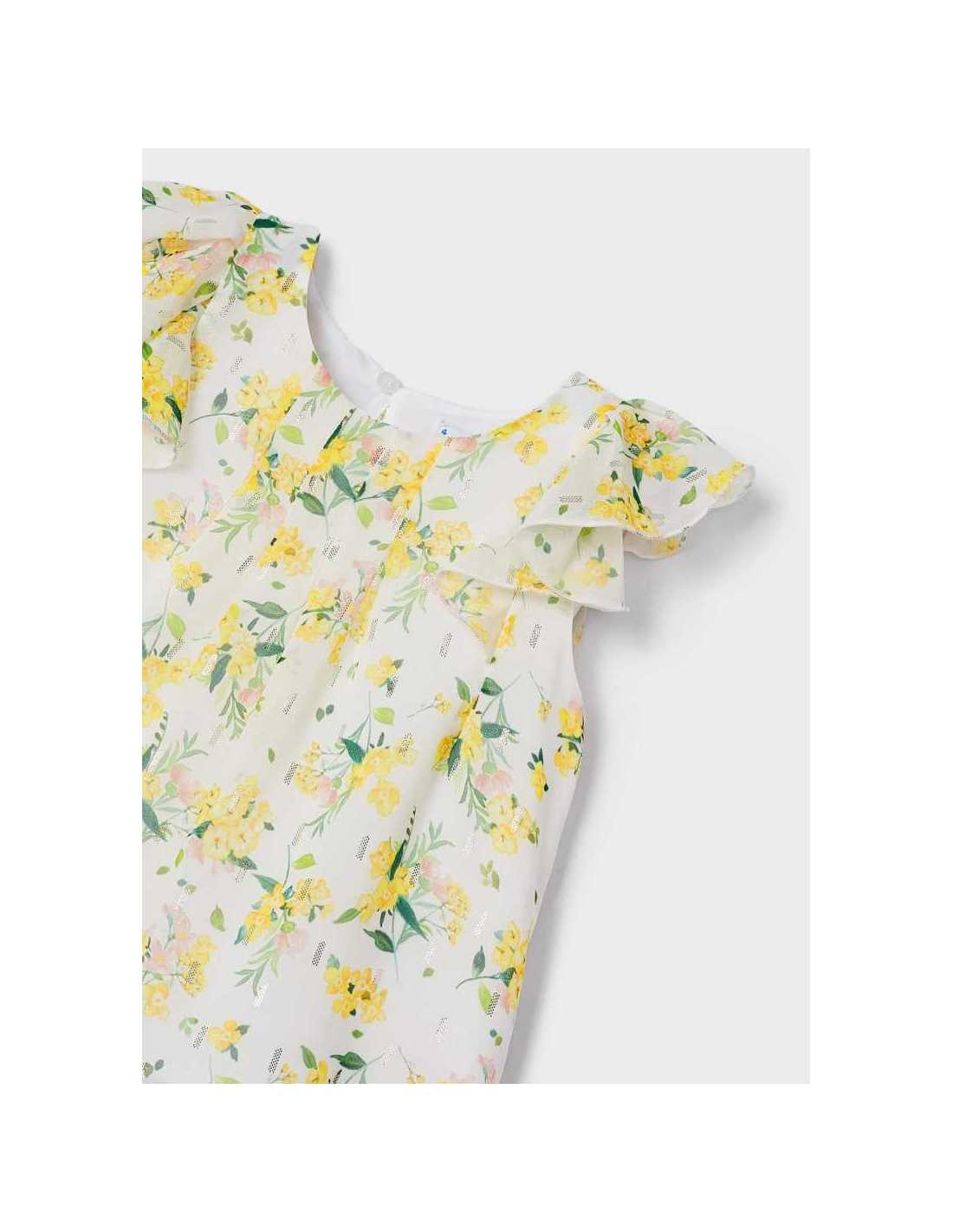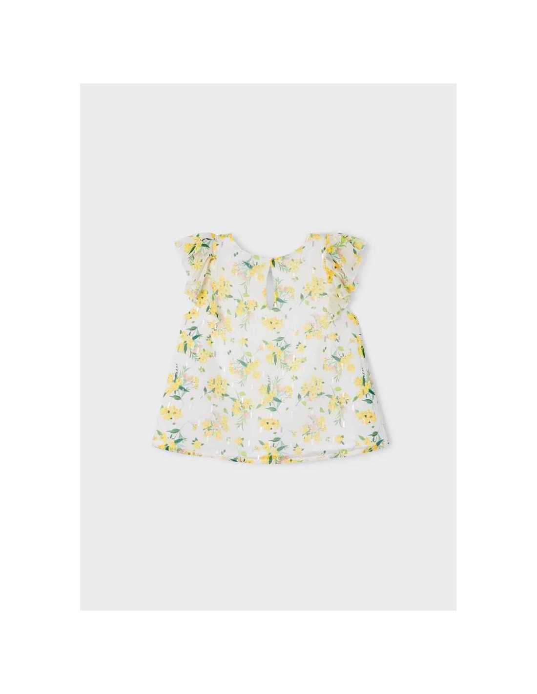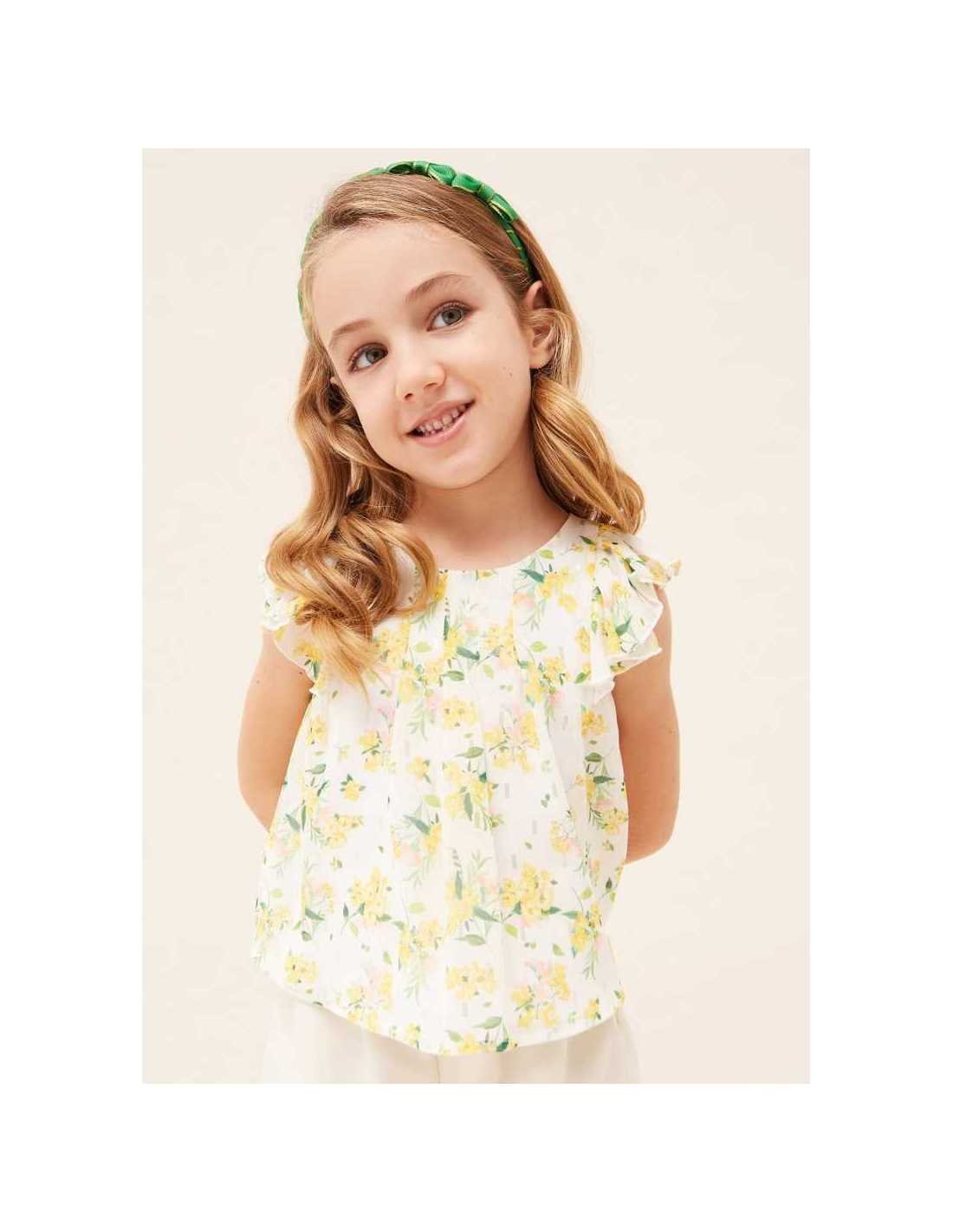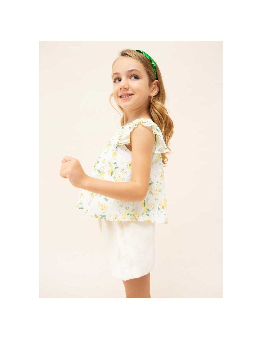 Blusón sin mangas para niña. Cuello redondo. Diseño estampado.