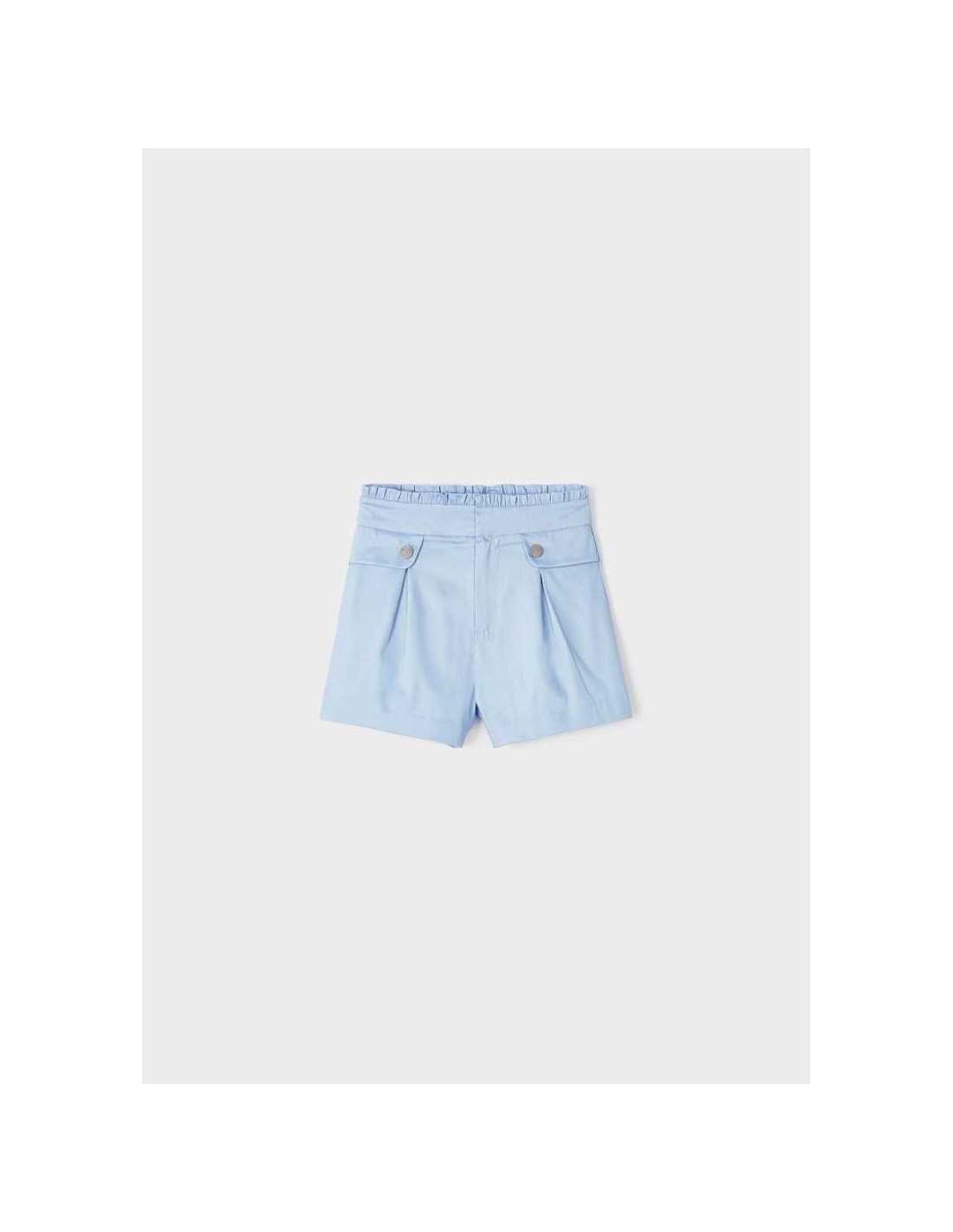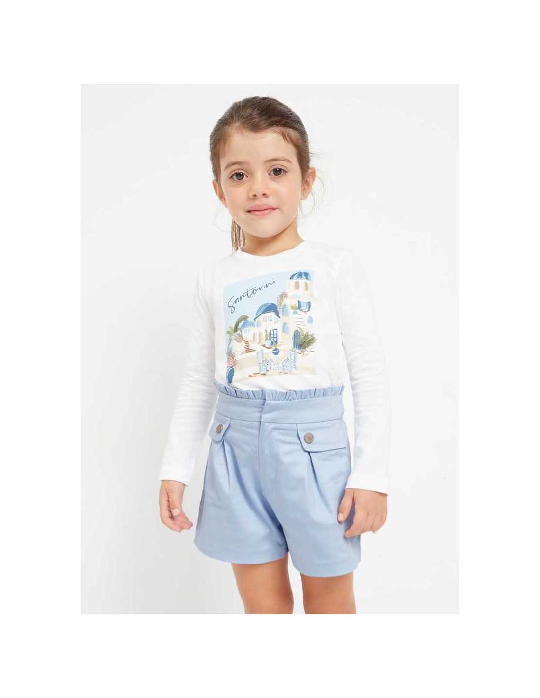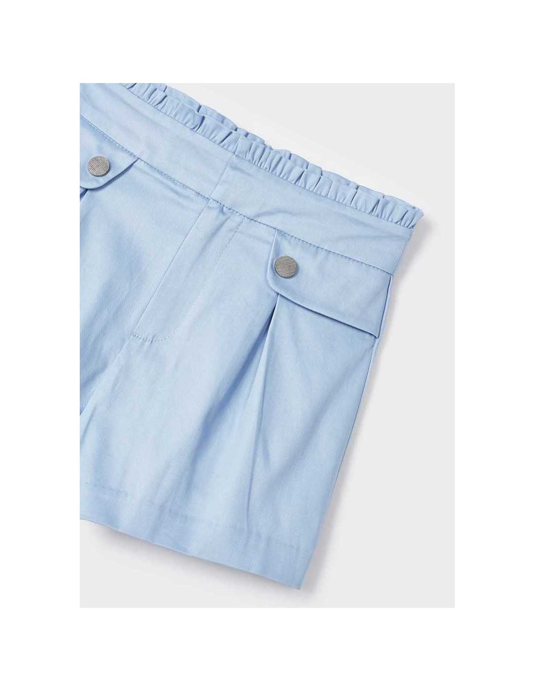 Pantalón de tipo short para niña. Cierre con cremallera y botón. Suave tejido de algodón elástico.