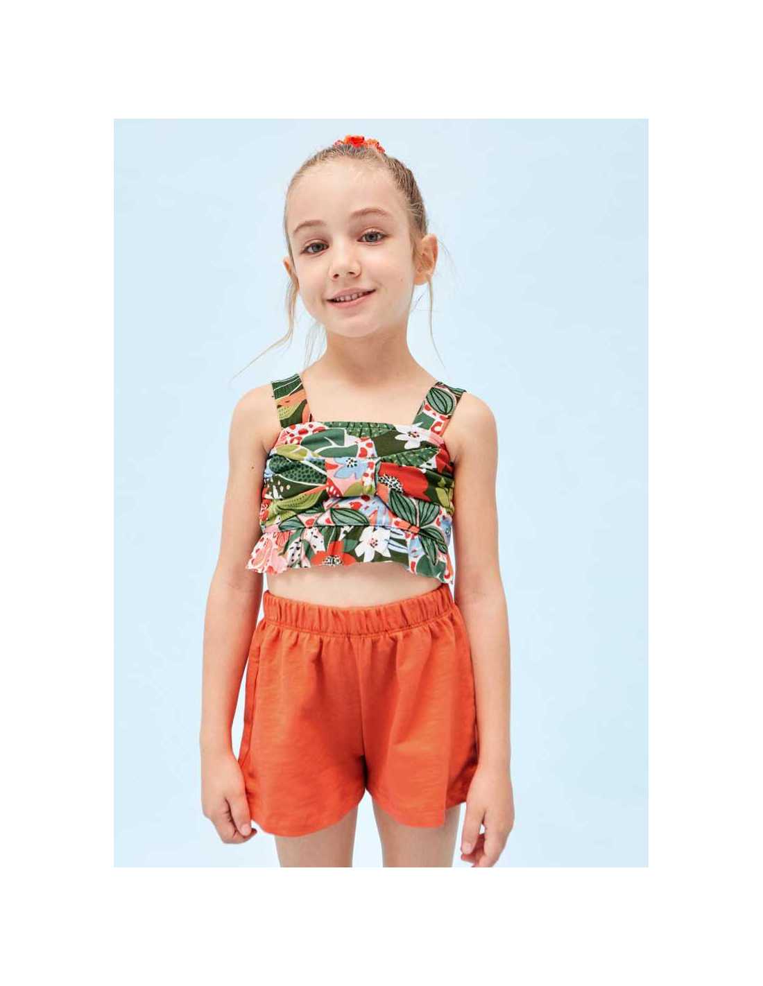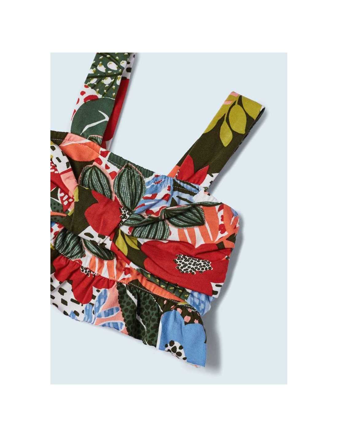 Prenda ECOFRIENDS 100% algodón sostenible. Top de tirantes para niña. Estampado con decoración floral.