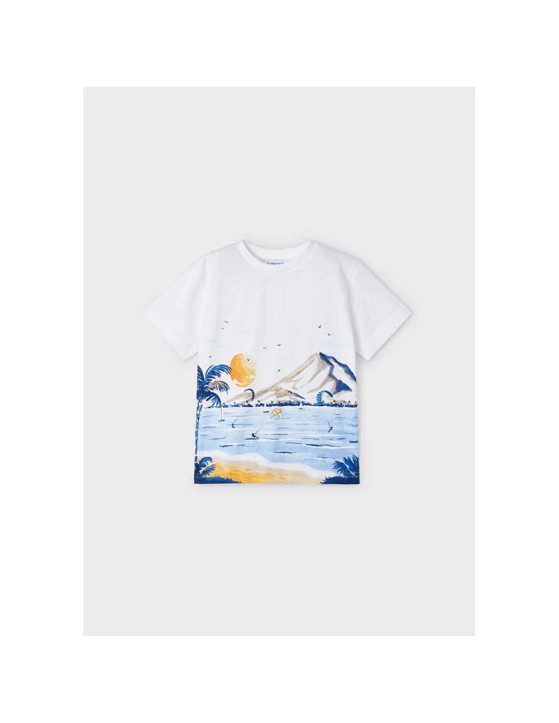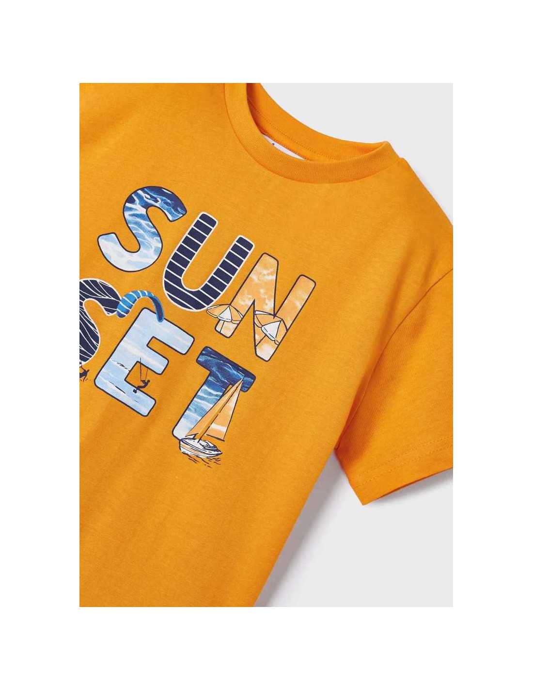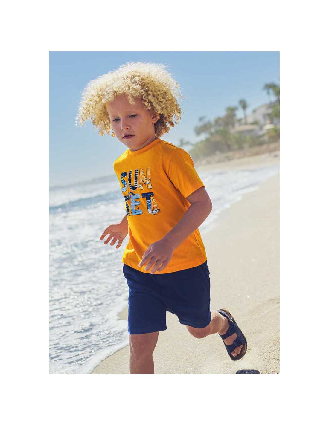 Prenda ECOFRIEND 100% algodón sostenible. Camiseta de manga corta para niño. Cuello redondo. Estampado veraniego.