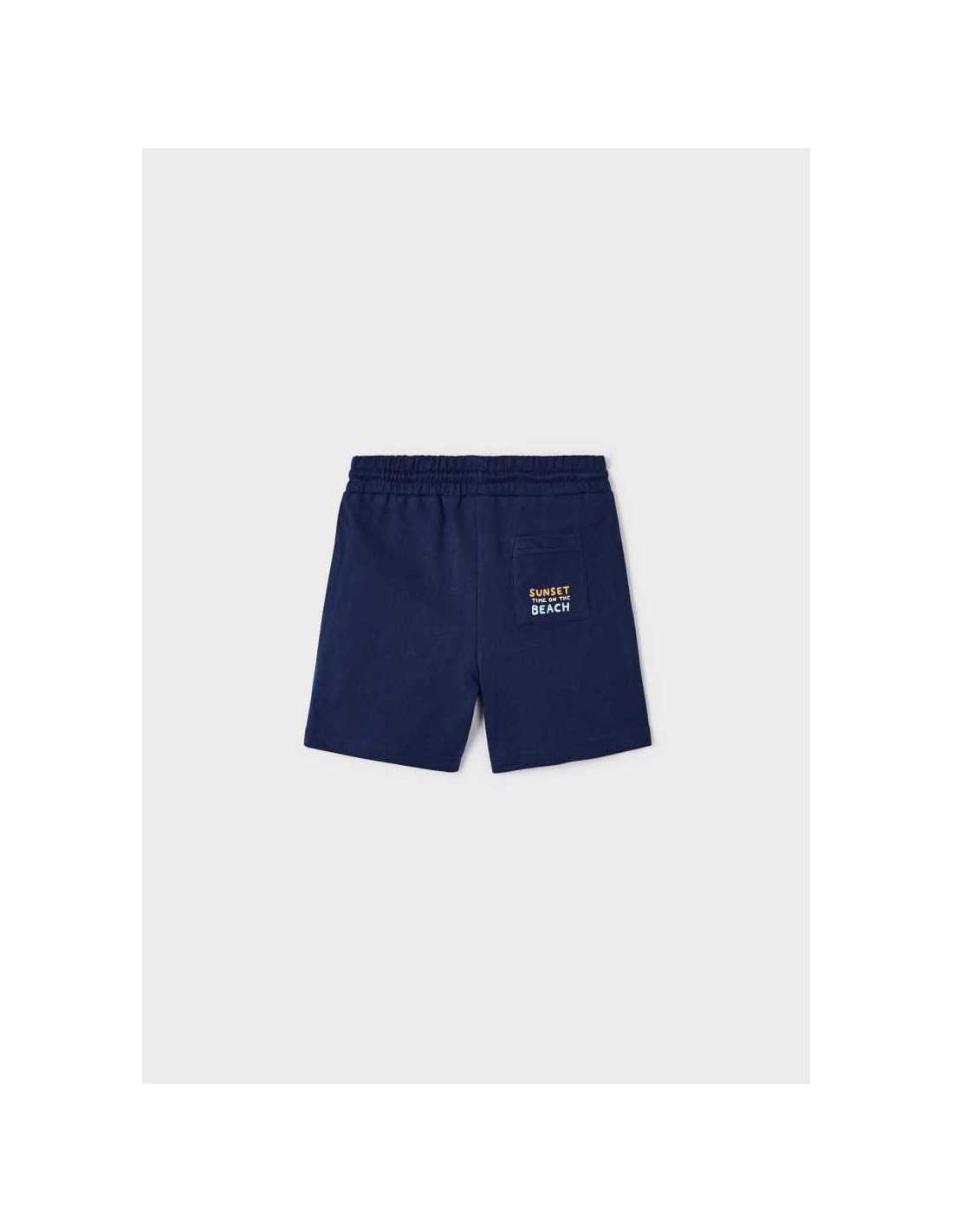 Prenda ECOFRIEND 100% algodón sostenible. Pantalón de tipo bermuda para niño. Cintura con cordón interior ajustable. Bolsillos funcionales en el delantero y en la parte trasera de la prenda.