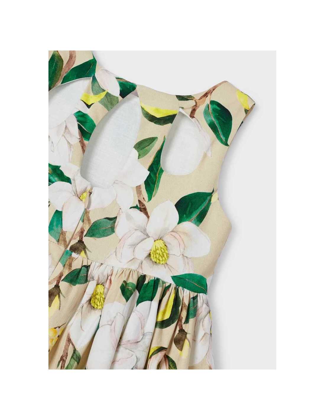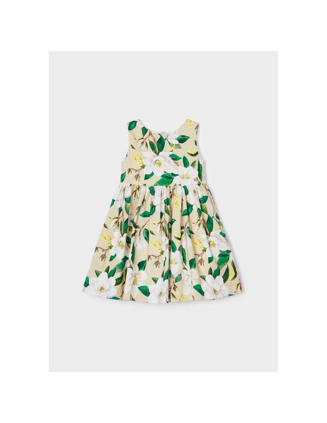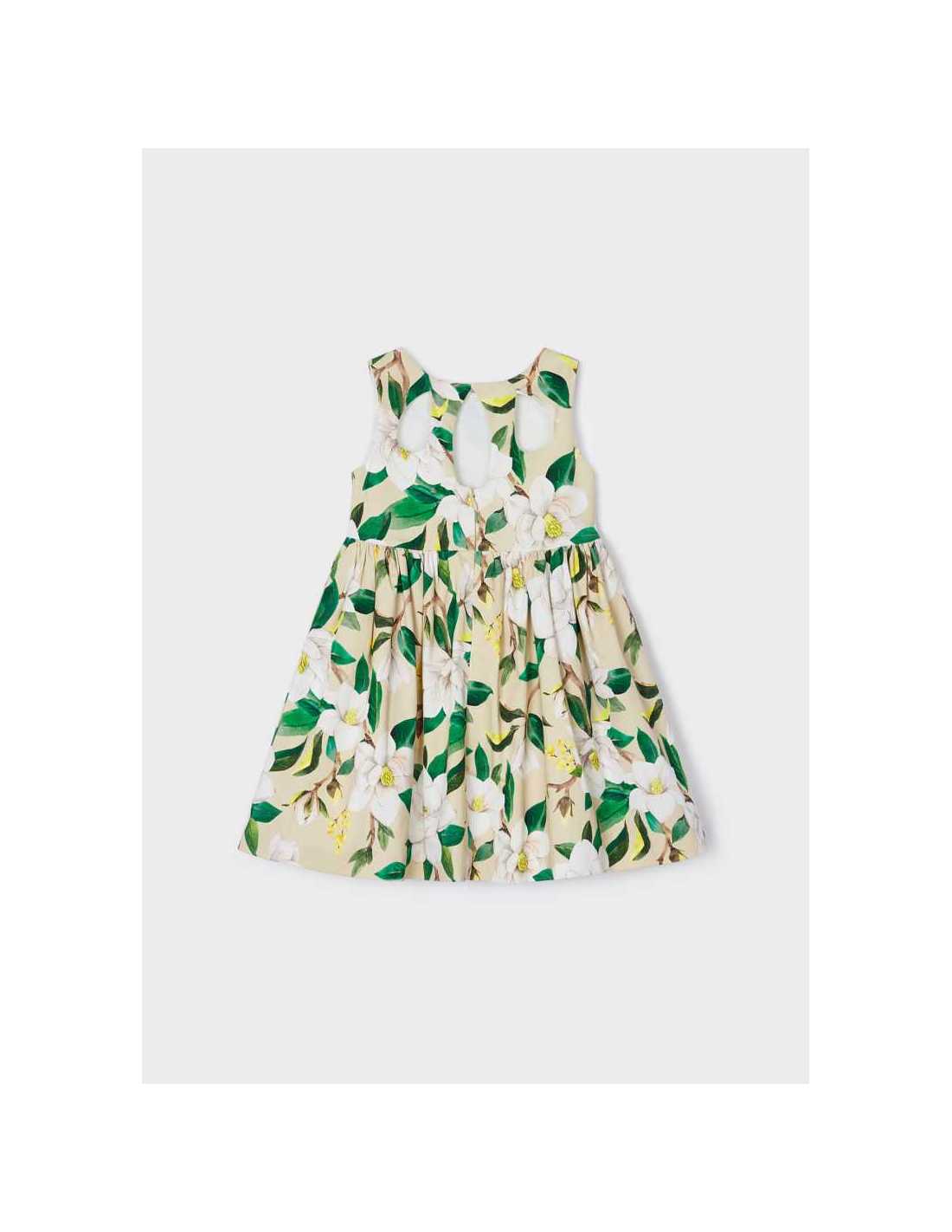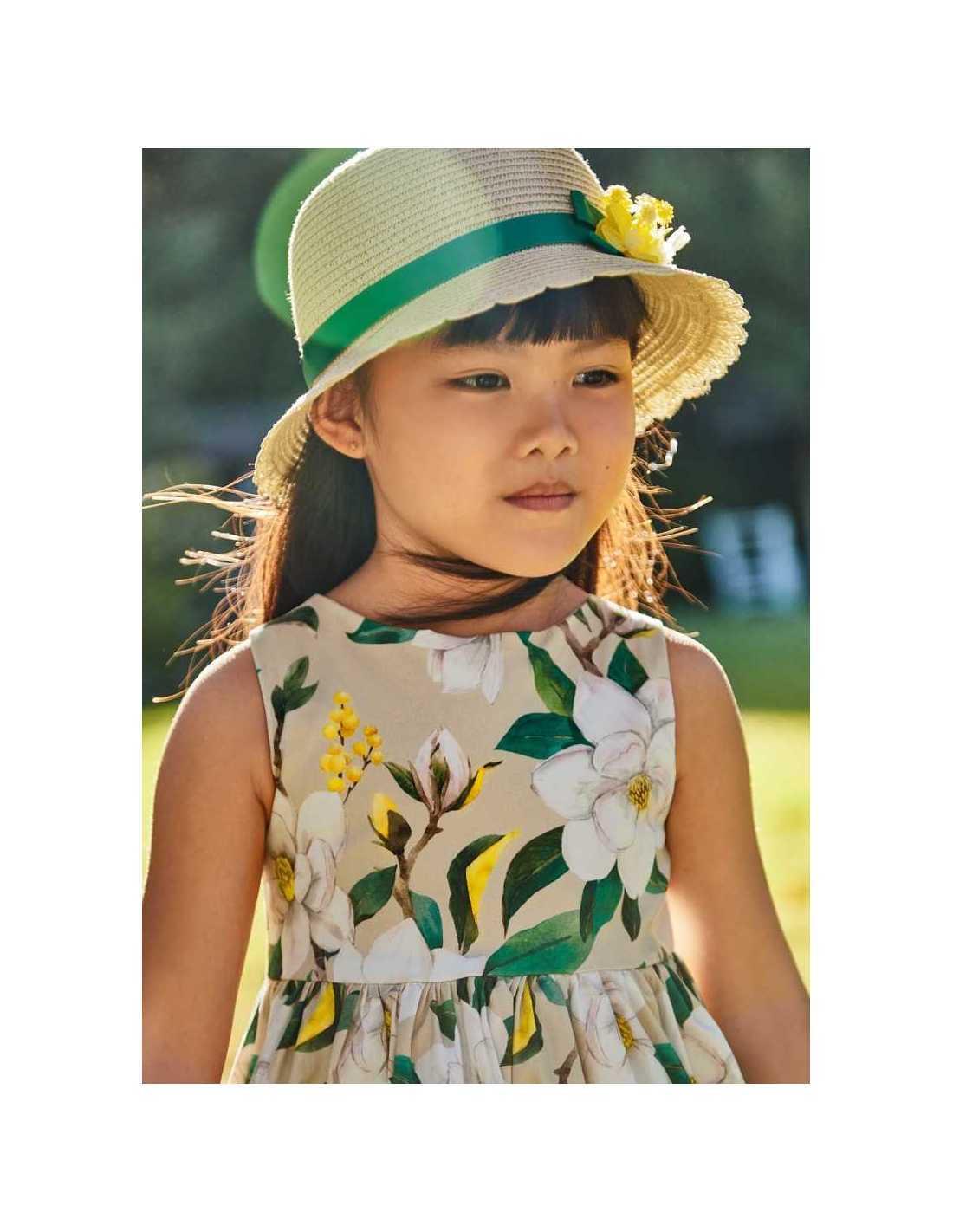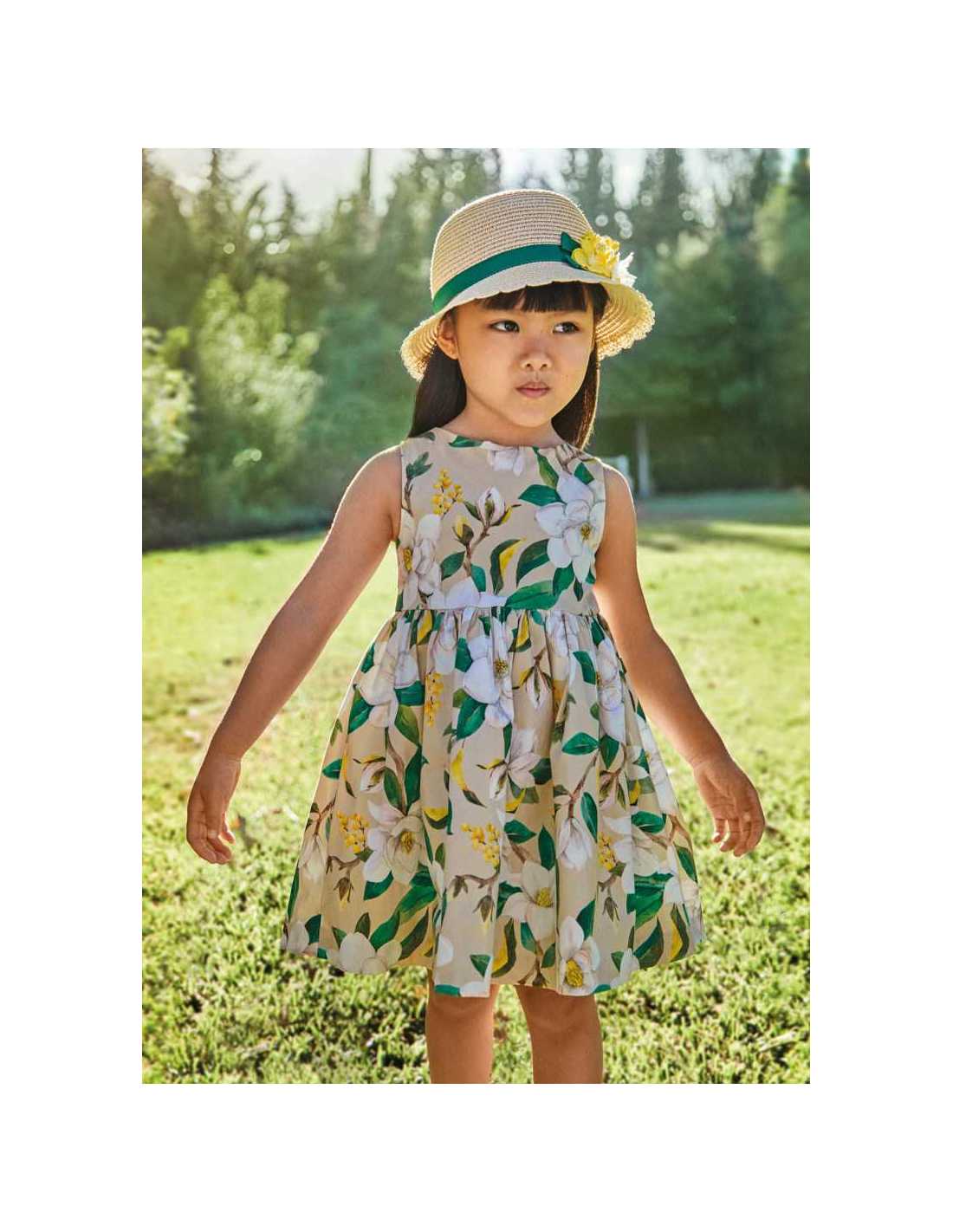 Vestido de tirantes para niña. Cuello redondo. Pequeña abertura en la espalda con cierre de botón para facilitar la puesta de la prenda. Suave tejido de algodón elástico. Diseño estampado.