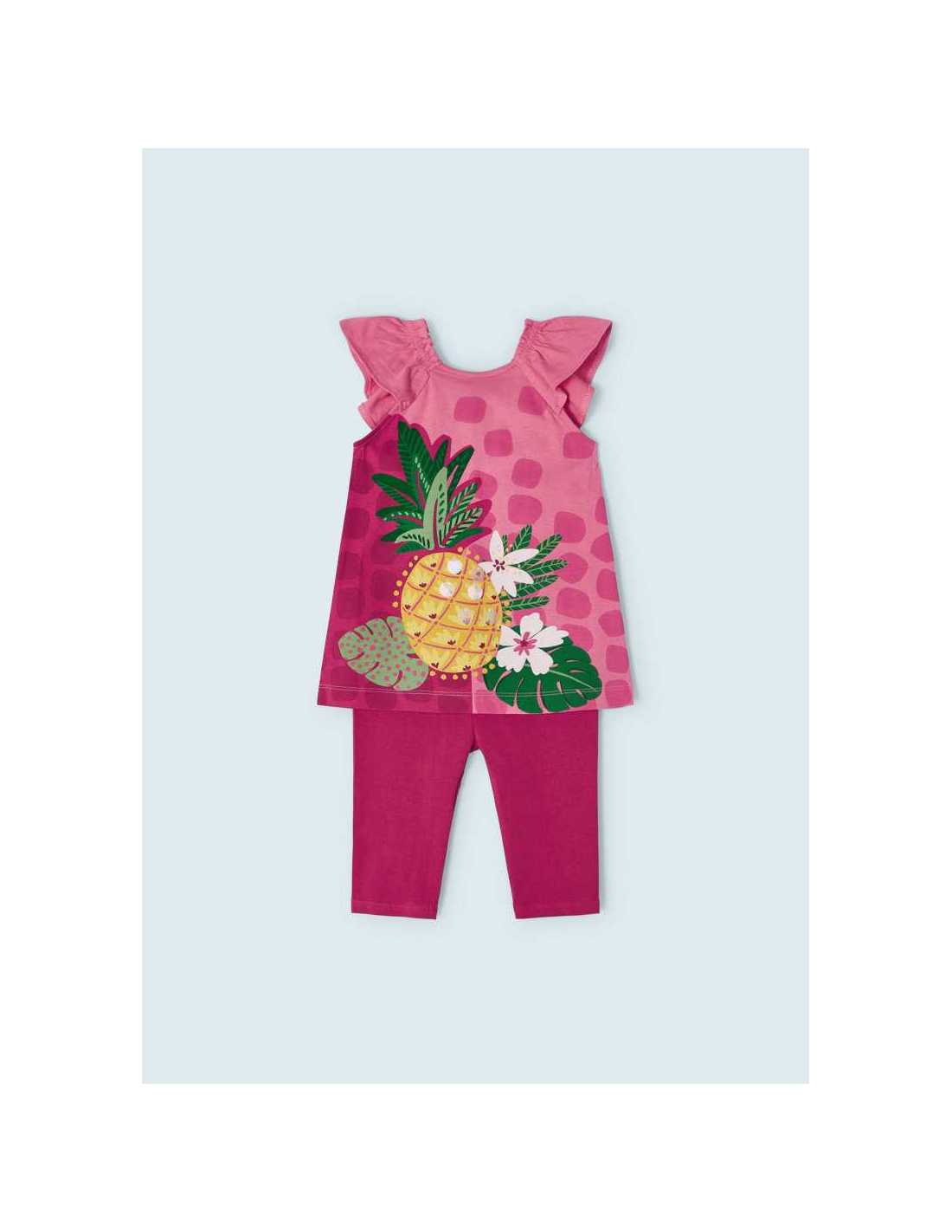 Conjunto para niña de camiseta y pantalón pirata tipo legging a juego.