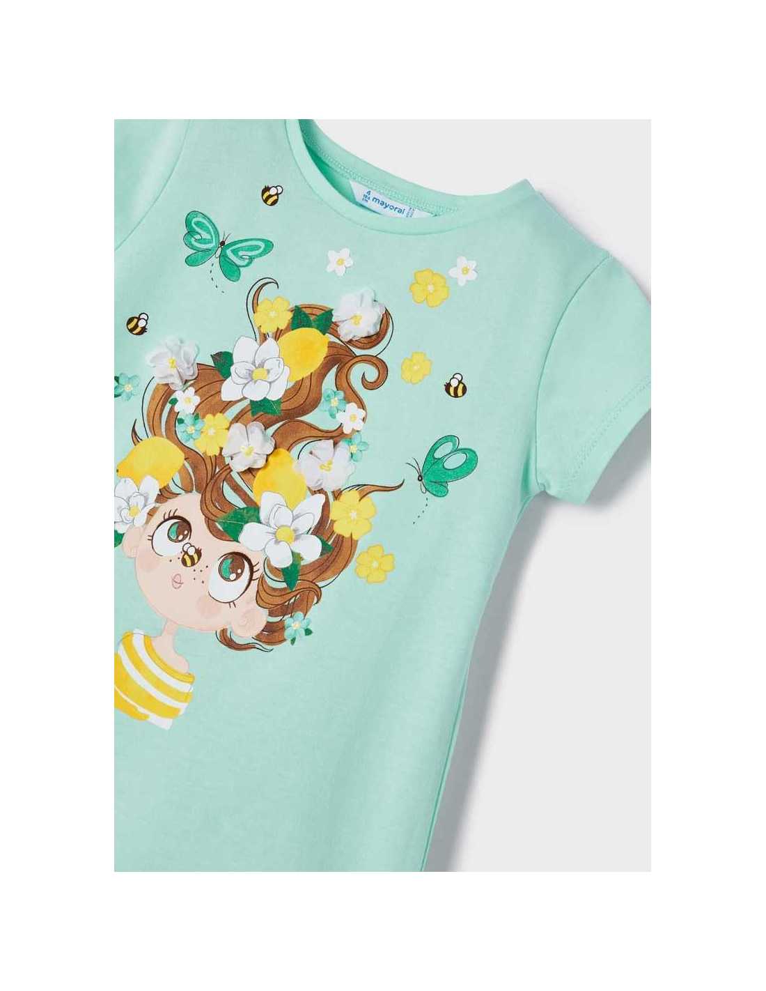 Prenda ECOFRIENDS 100% algodón sostenible. Camiseta de manga corta para niña. Cuello redondo. Diseño estampado.