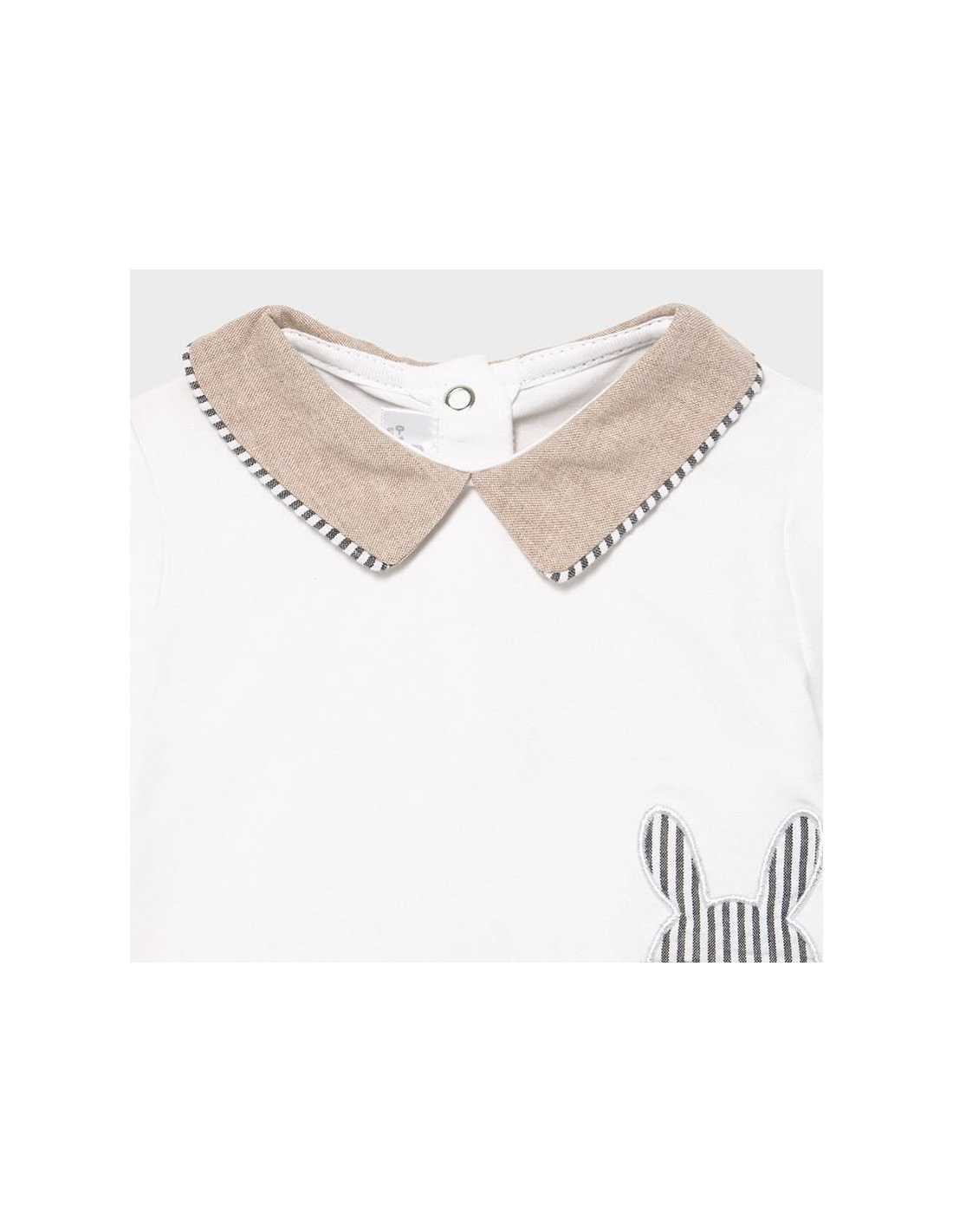Camiseta de manga corta para recién nacido niño. Cuello camisero. Bolsillo simulado decorativo en la parte delantera. Elementos de adorno: bordado.