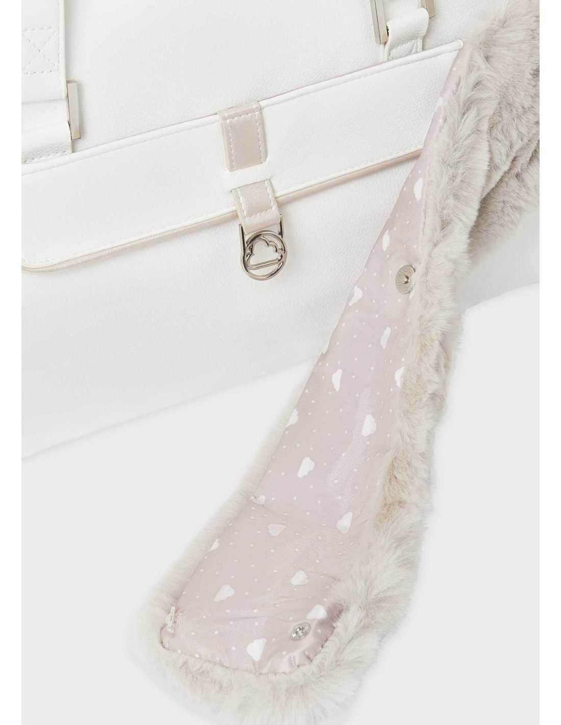 Espacioso bolso de maternidad pensado para ayudarte en el día a día y guardar todo lo necesario para tu bebé. Cierre con cremallera Moderno exterior de polipiel. Cuenta con asas de mano, al hombro y de colgado, las dos últimas de diseño desmontable para una mejor personalización en el uso. Elementos de adorno: apliques de pelo. Este artículo tiene unas dimensiones de 47 x 30 x 17 cm.