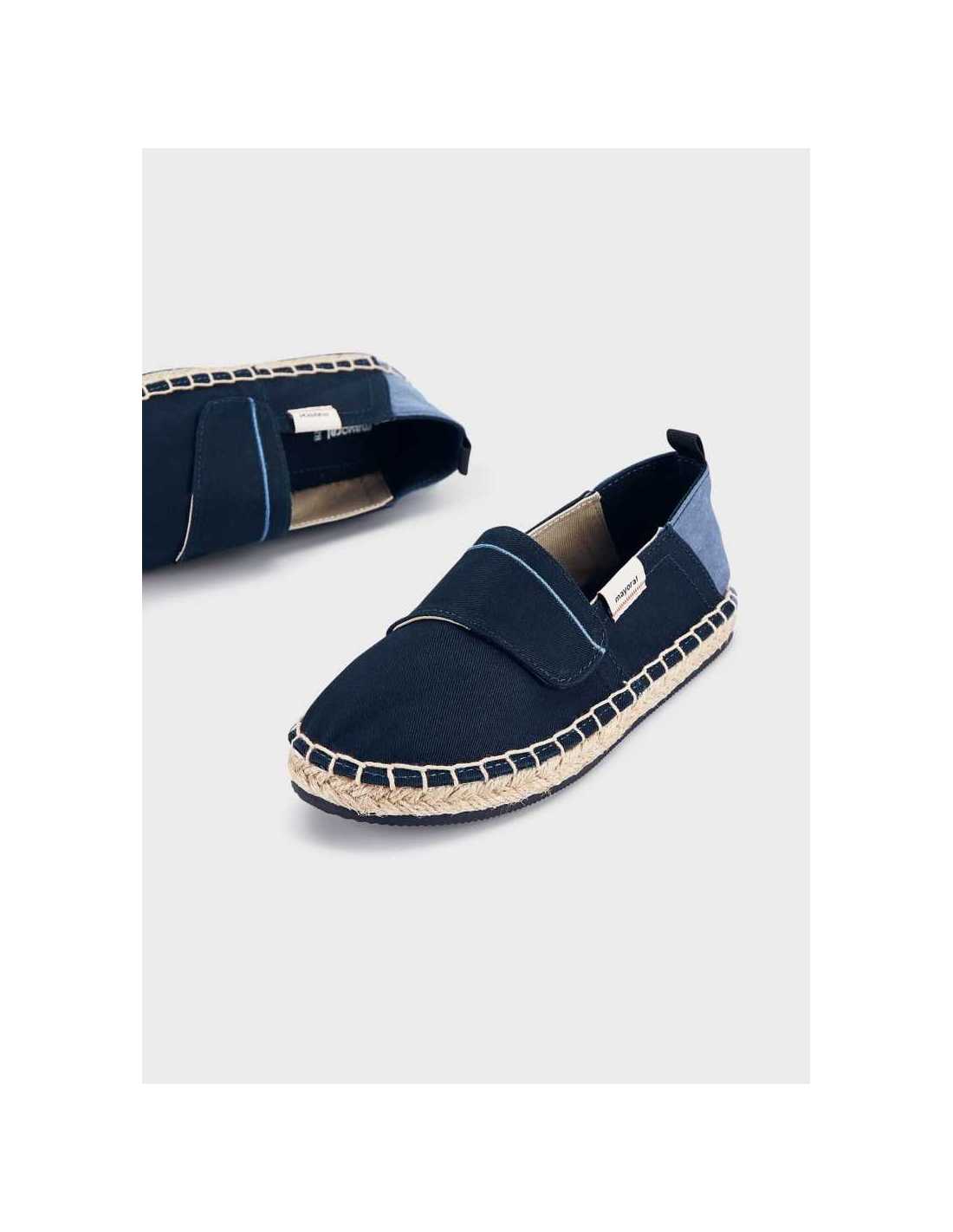 Alpargatas para niño cómodas, versátiles y fáciles de combinar para cada día. Material exterior textil. Cómoda suela combinada de yute trenzado 100% natural con goma antideslizante. Cierre con velcro ajustable que garantiza una perfecta sujeción del pie. Este modelo también está disponible en las tallas 19 a 25, 31 a 35 y 36 a 38.