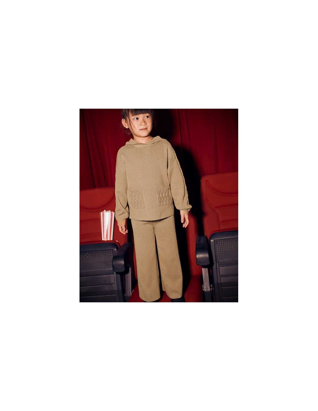 Jersey de líneas relajadas para niña. Cuello con capucha. Modelo con aberturas laterales en el bajo que dan mayor holgura. Bolsillos funcionales en la parte delantera.