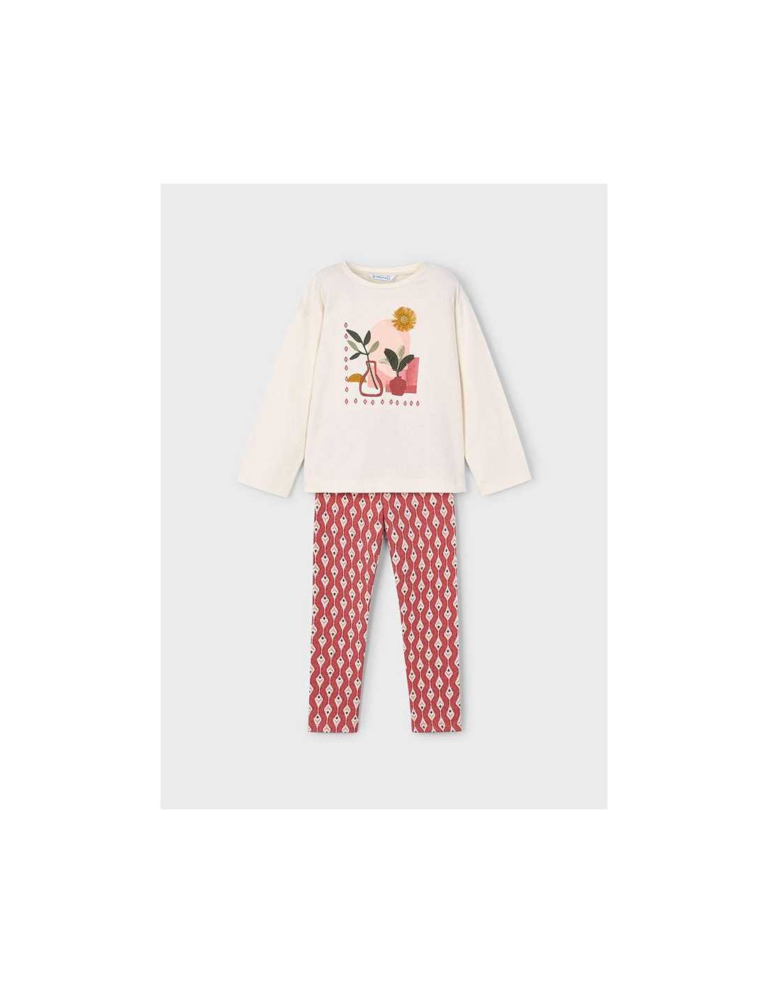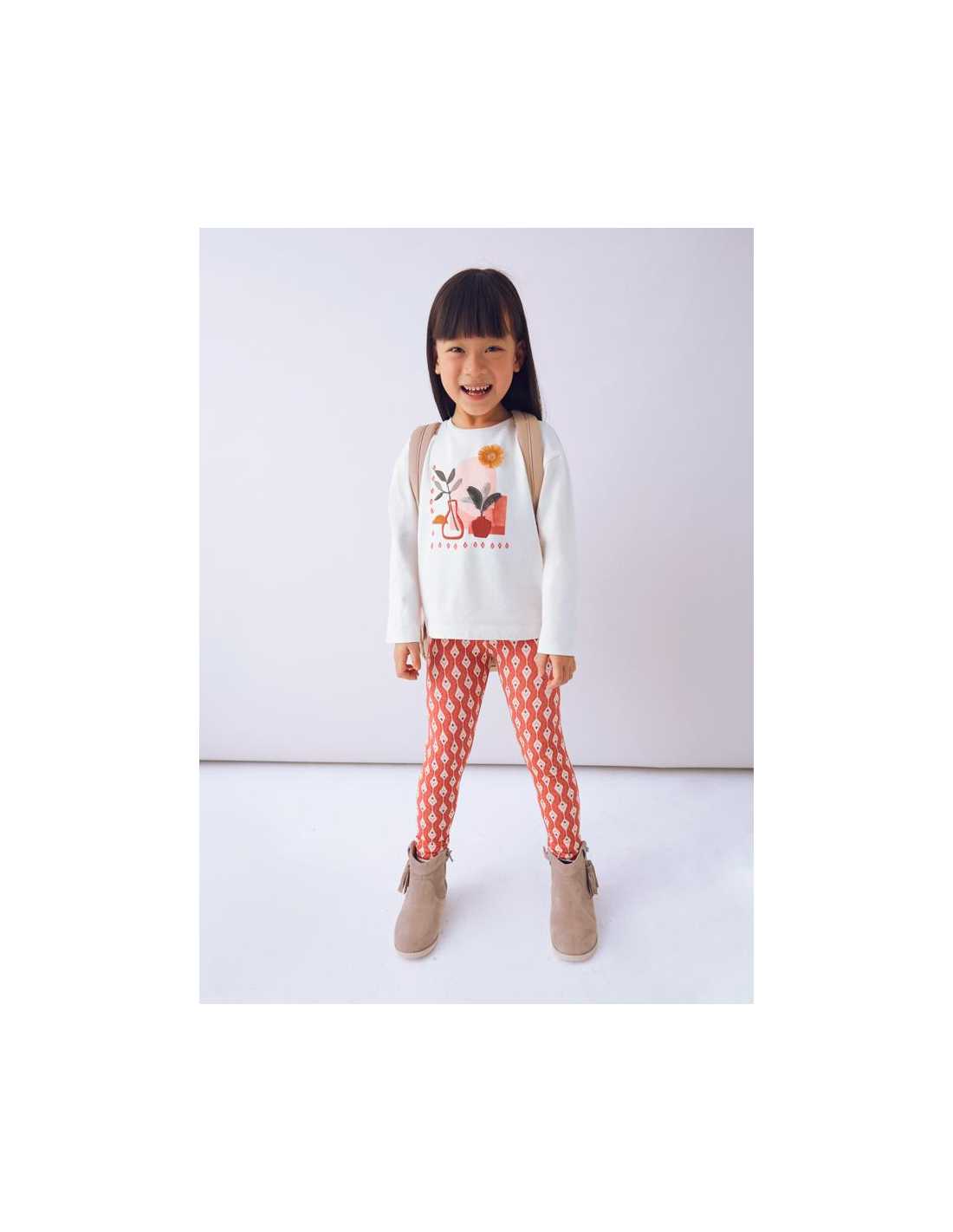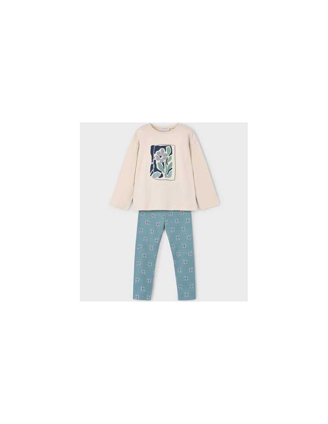 Conjunto de dos piezas para niña compuesto por una camiseta y un pantalón tipo legging combinado.