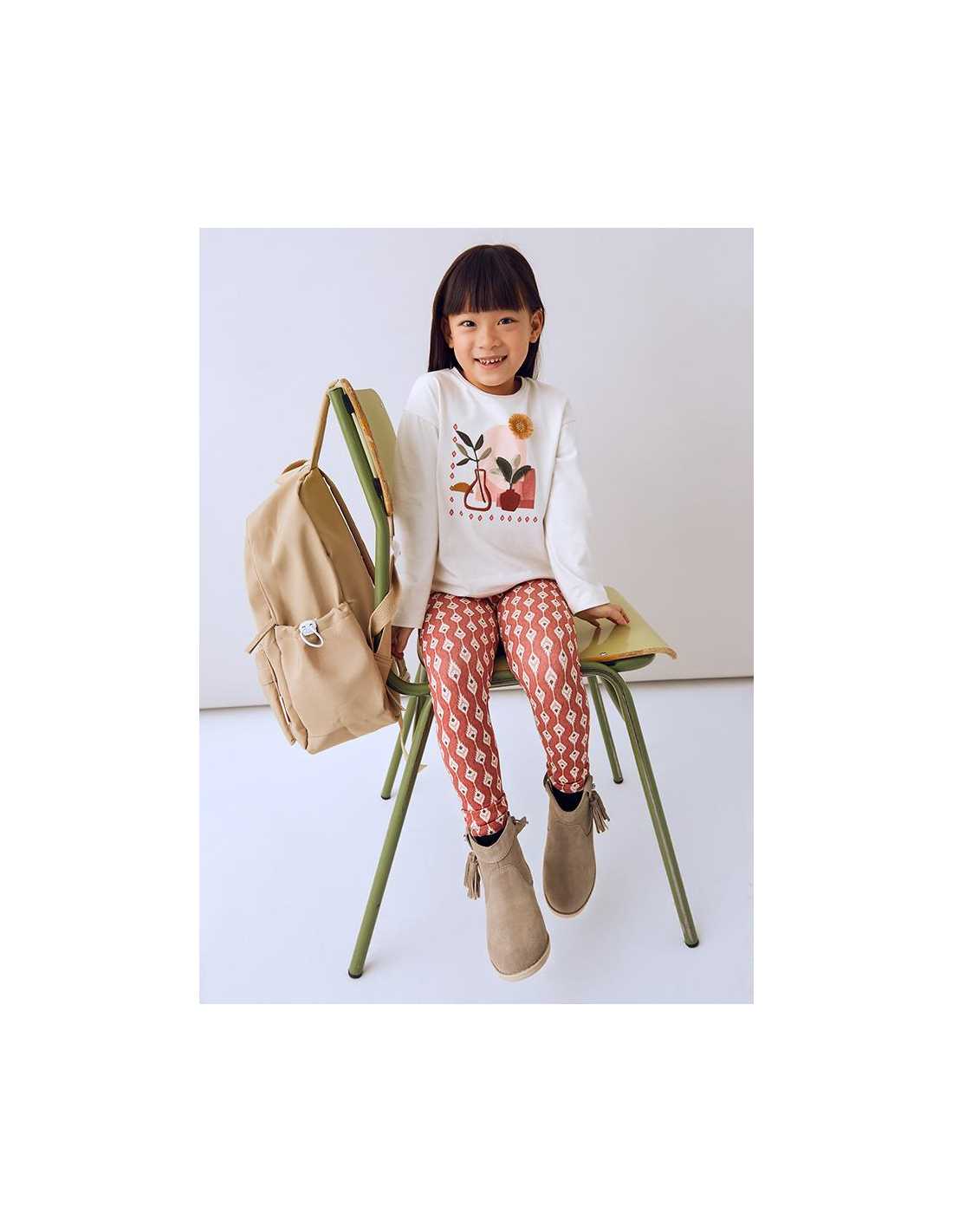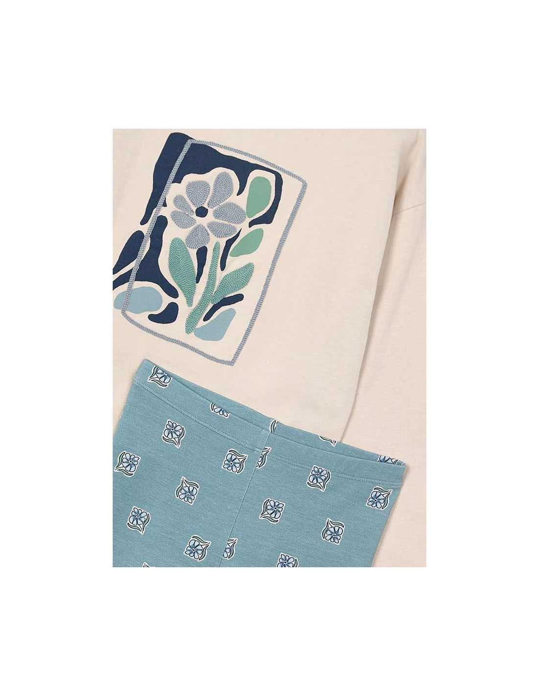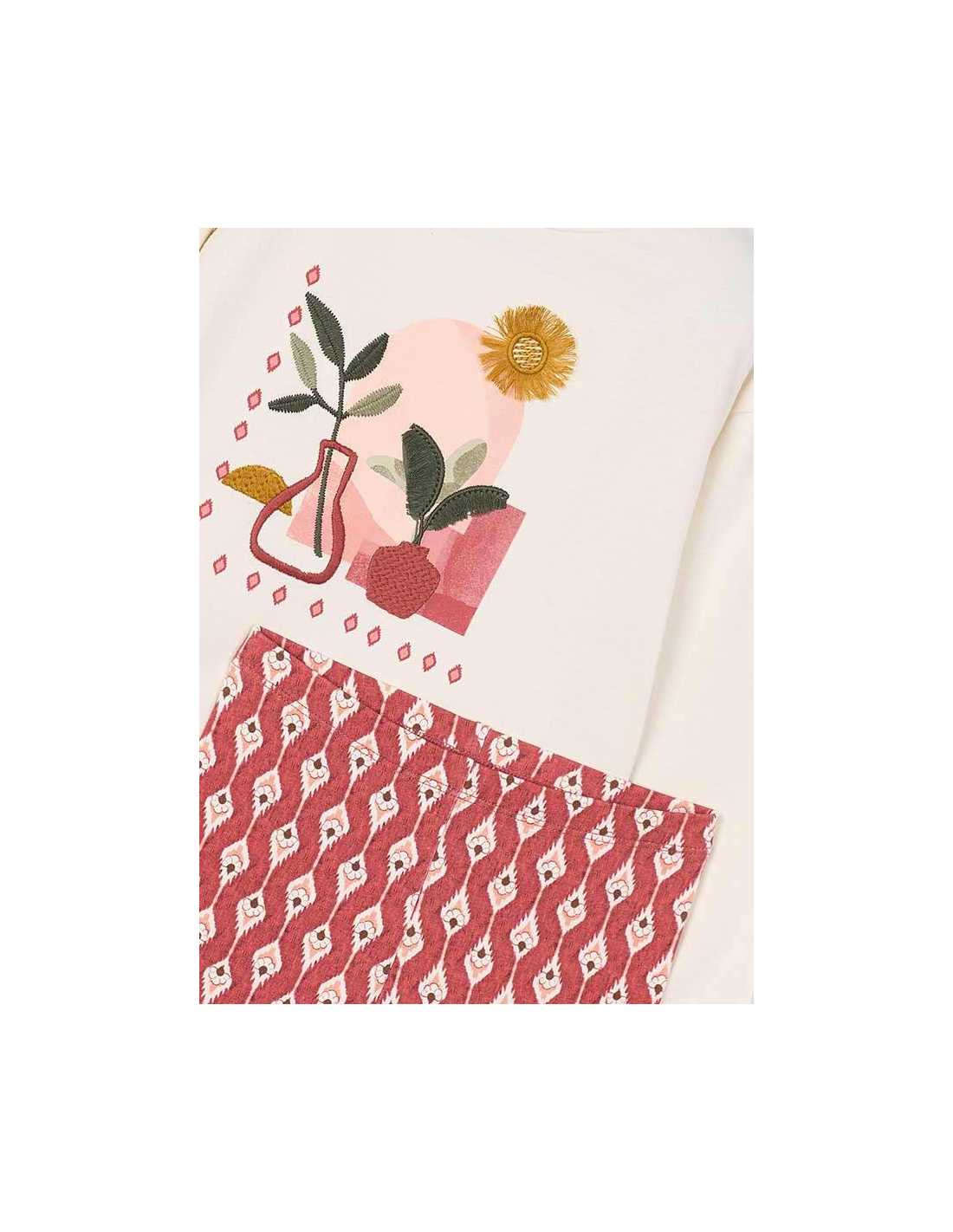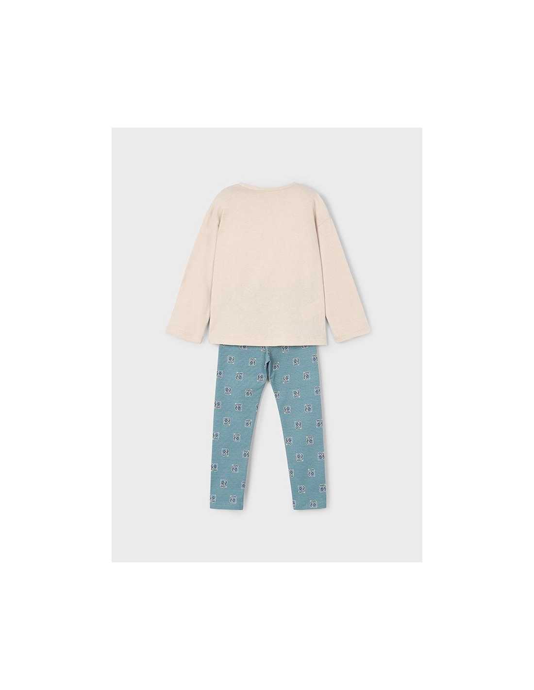 Conjunto de dos piezas para niña compuesto por una camiseta y un pantalón tipo legging combinado.