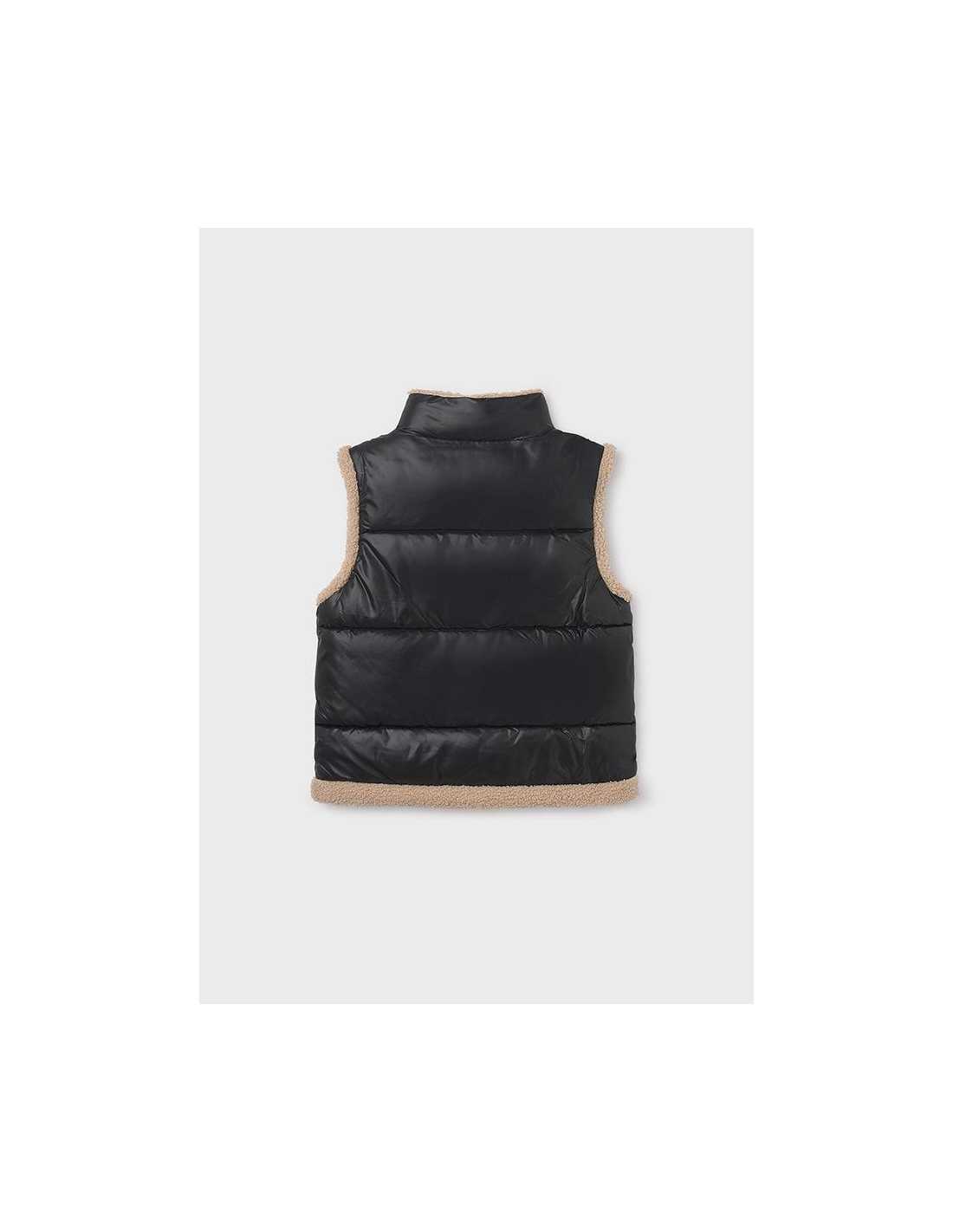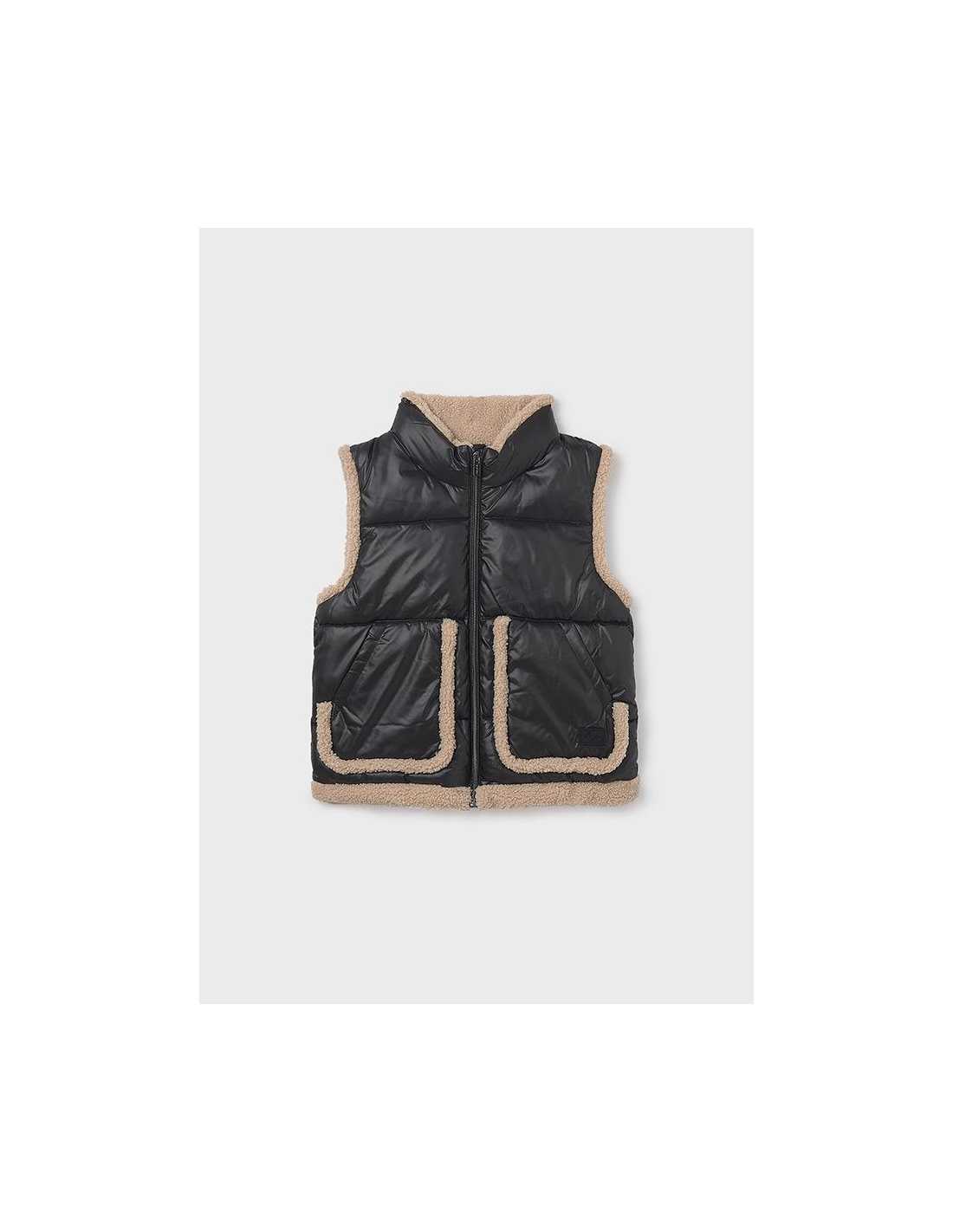 Contiene poliéster reciclado. Chaleco para chica. Cuello envolvente. Cierre central delantero con cremallera. Cálido tejido de punto acolchado. Forro interior combinado con borrego. Bolsillos funcionales en la parte delantera.